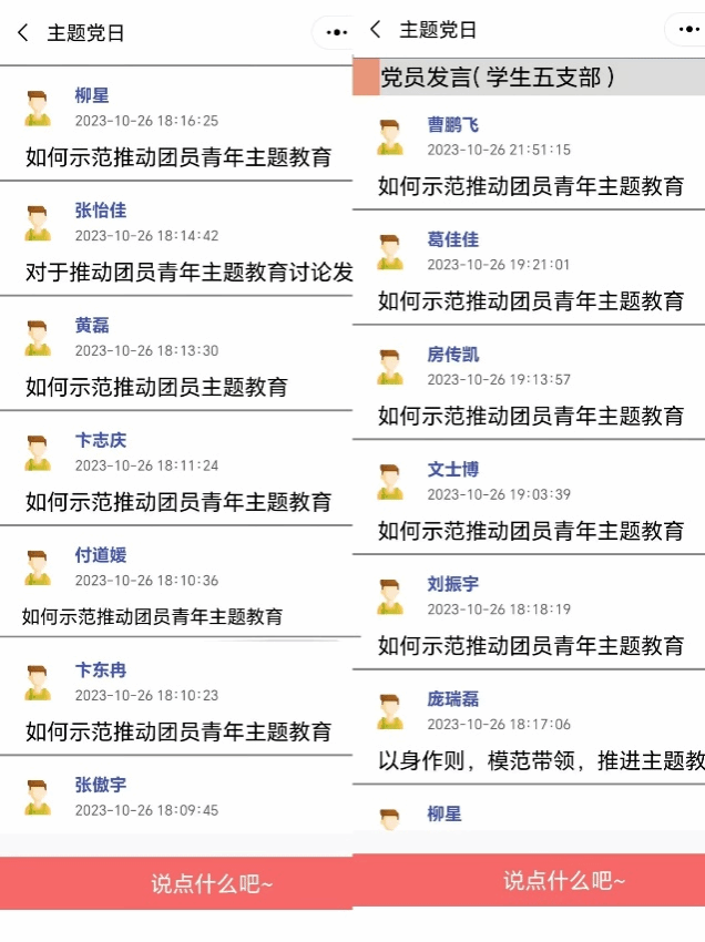 学习过后,支部全体党员以“如何示范推动团员青年主题教育”为主题,结合自身学习和工作实际开展深入讨论。毛玉芝指出:党旗所指,就是团旗所向。要全面加强党的领导,将党建带团建制度机制贯穿团员和青年主题教育全过程。要引导团员青年开展主题教育,,读原著学原文悟原理,学深悟透习近平新时代中国特色社会主义思想,把“学思践悟”作为理论武装出发点和落脚点。要动员引领广大团员青年为强国建设、民族复兴伟业挺膺担当、团结奋斗。与会党员积极发言,并将研讨内容同步在公司党建小程序。