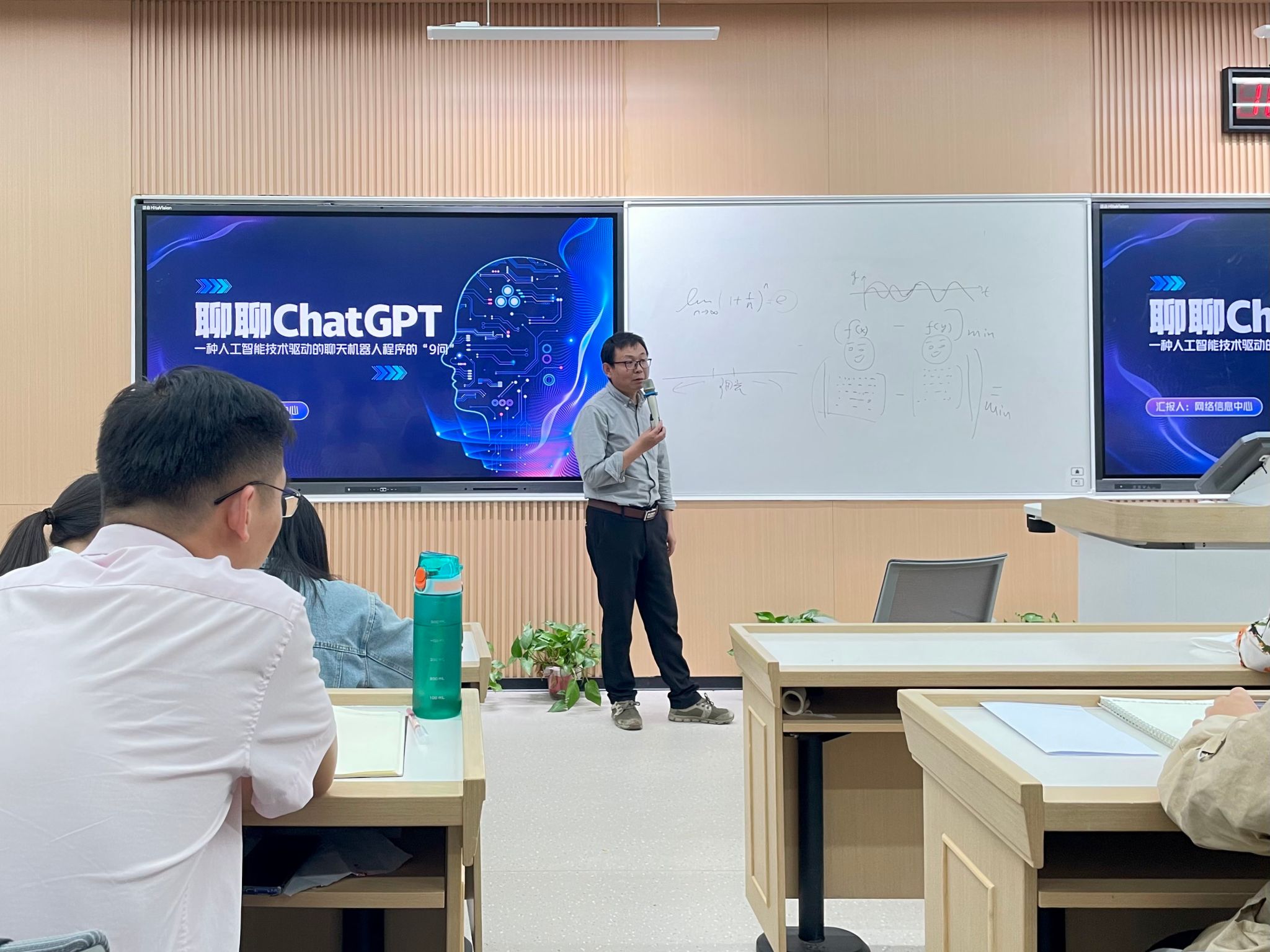 阚红星带领同学们认识了人工智能的特点及发展历程,介绍了其在中医药领域关于纳米酶文献整理及预测方法的应用。