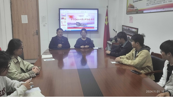11月1日晚,员工第一党支部组织第65期入党积极分子开展专题研讨,研讨主题为学习贯彻习近平新时代中国特色社会主义思想和党的二十届三中全会精神。员工第一党支部的第65期入党积极分子培训班全体学员参加研讨。