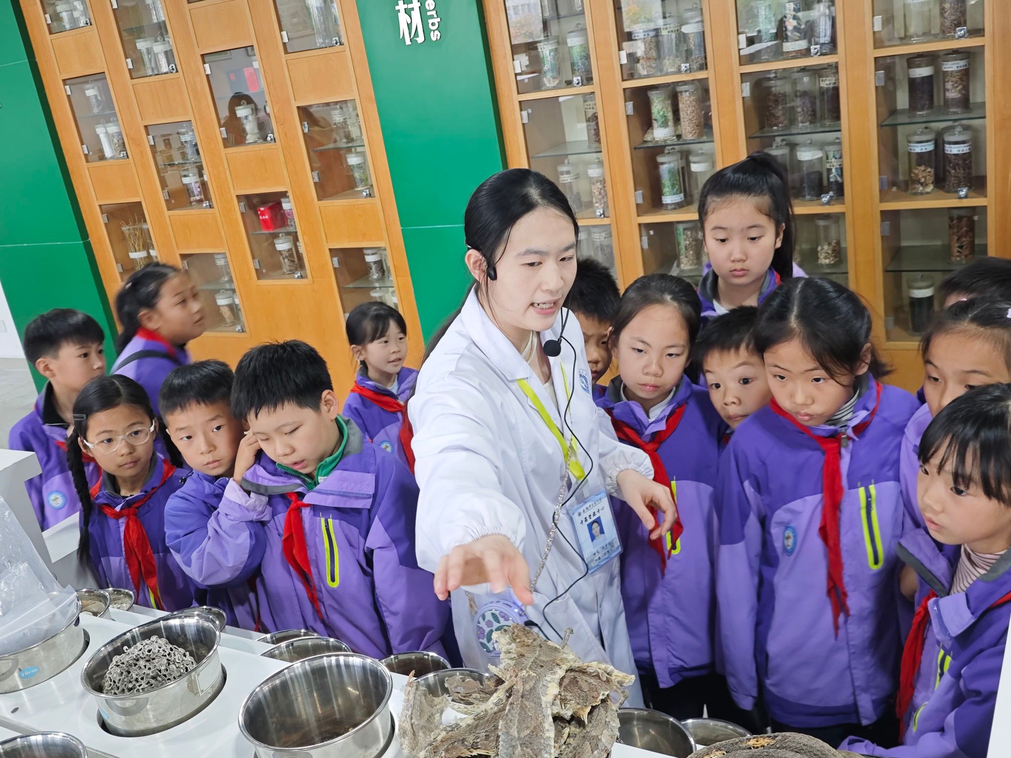 当天下午,在公司师生的带领下,十里庙小学的师生们来到英国正版365官方网站,小员工们边走边看边听,在英国正版365官方网站太极花园华佗像前了解神医华佗的故事,参观公司中药科学考察队的科考成果,感受科考队员们不畏辛苦,采集中药标本的精神。