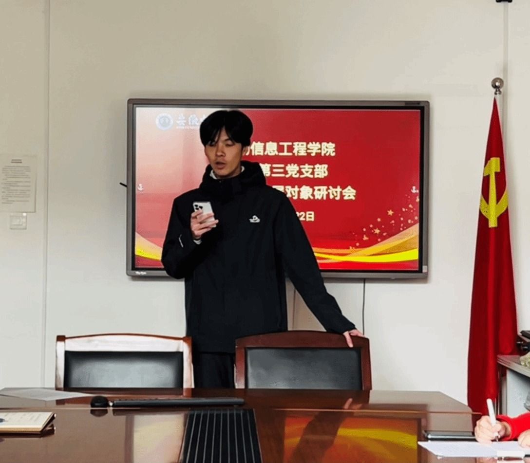 11月22日,员工第三党支部组织开展第14期党员发展对象培训班学员进行专题研讨会,研讨主题为“如何争做担当民族复兴重任的时代新人”并同时结合培训所学,分享个人感悟。会议由员工第三党支部书记朱梦婷主持,员工第三党支部第14期党员发展对象培训班全体学员参加研讨。