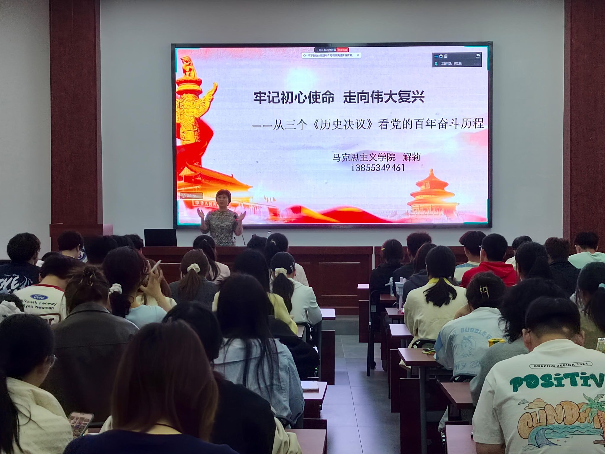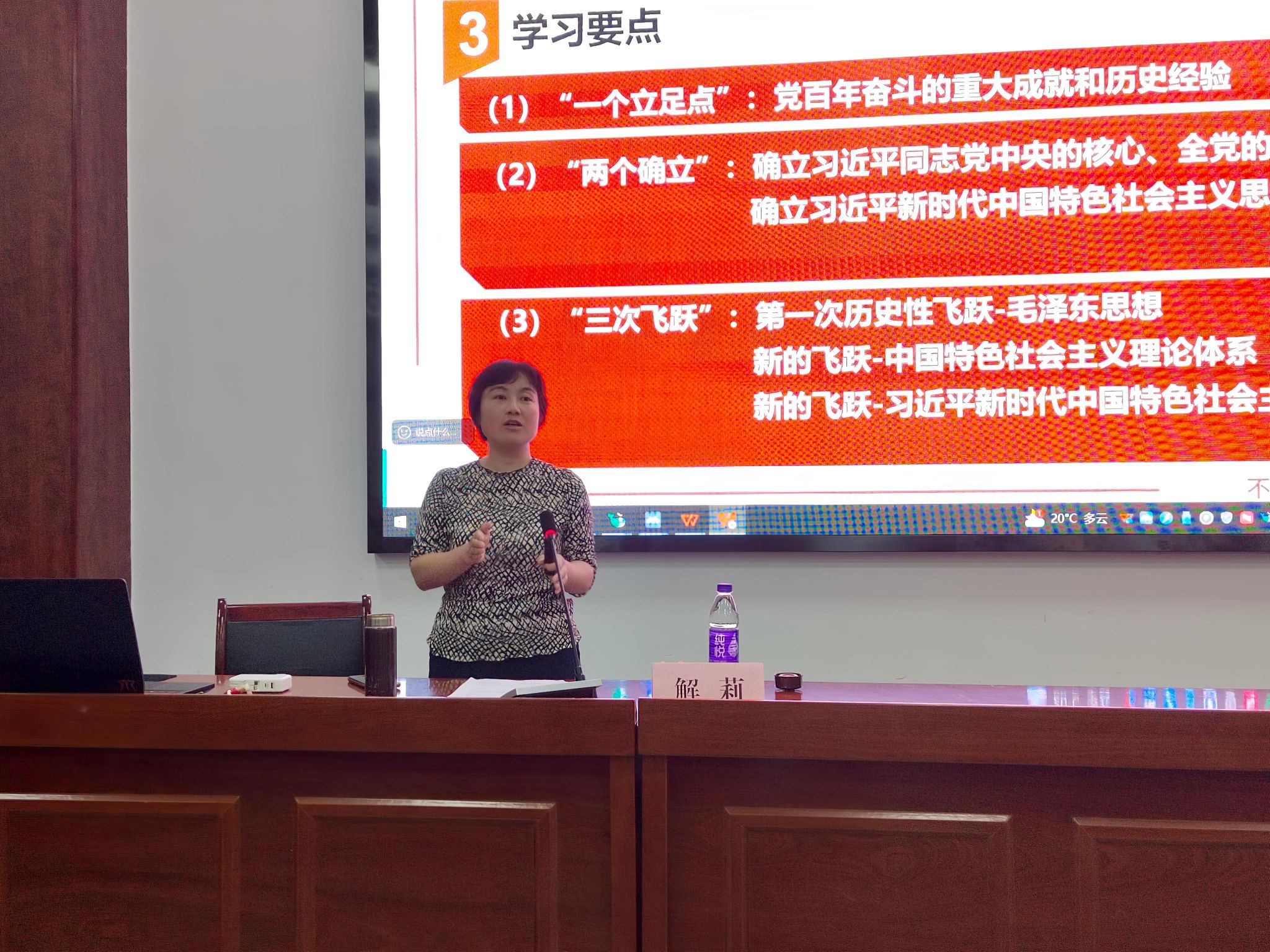 解莉以《牢记初心使命,走向伟大复兴——从党的三个《历史决议》看党的百年奋斗历程》为主题进行领学,她回溯党的百年征程,精析三个《历史决议》,阐释党在自我革命与社会革命中不断发展壮大的历史逻辑。