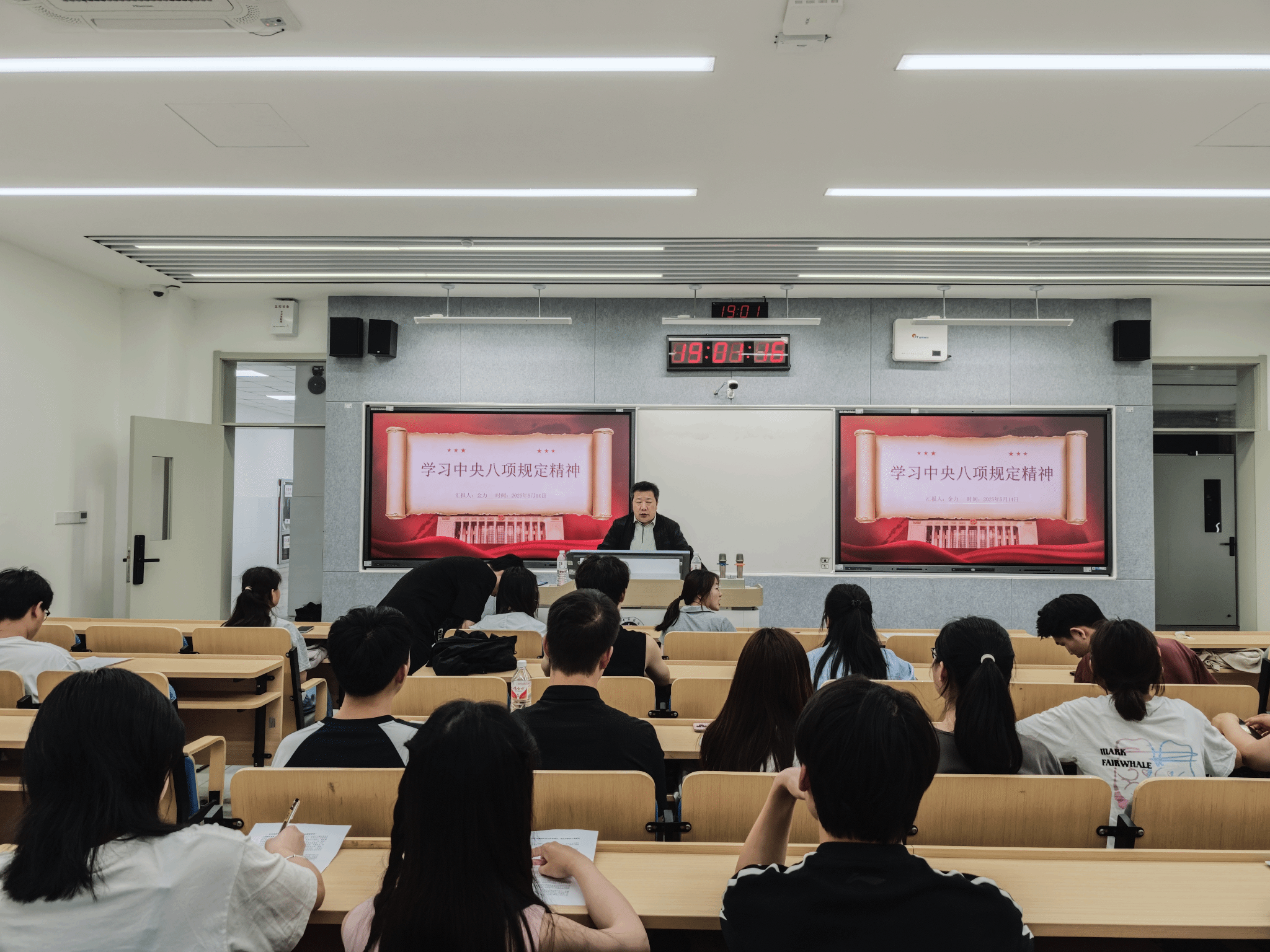 党课上,金力深入阐述了中央八项规定精神的重要意义、核心内容及实践要求。他强调,中央八项规定是新时代推进全面从严治党的重要抓手,是密切党同人民群众血肉联系的关键举措。对于员工党员而言,同学们要从自身做起,从小事做起,树立正确的价值观和权力观,坚决抵制形式主义、官僚主义、享乐主义和奢靡之风。