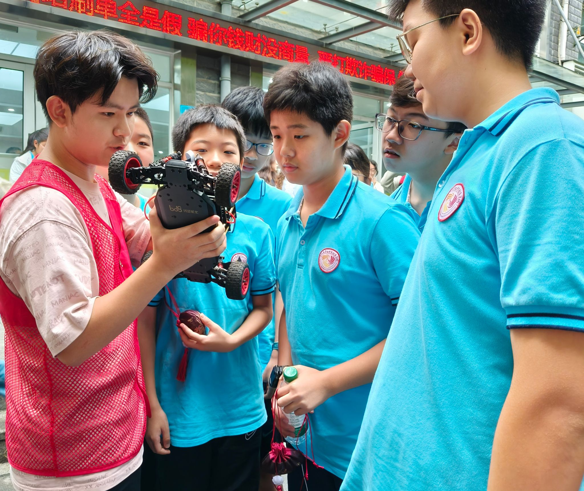 随后的智能汽车科普环节,来自2023级计算机科学与技术讯飞班的王学淇,结合自身专业知识,为同学们带来了一场别开生面的智能汽车知识微讲座。讲解结束后,王学淇还在户外现场展示了智能汽车的行驶过程,引得同学们阵阵惊叹,现场气氛十分热烈。