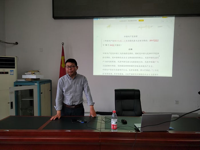 5月18日晚,公司党委副书记、经理阚红星为62期入党积极分子上专题党课,题目为:《中国共产党章程》导学。