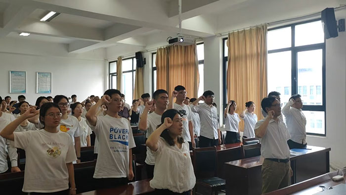 吴成海在讲话中总结了中国共产党102年来的光辉历史和伟大成就,并代表党委,对新发展党员进行集体谈话。他要求,一要扎实推进主题教育各项工作,深入学习贯彻习近平新时代中国特色社会主义思想,提高政治三力;二要加强党性修养,弘扬伟大建党精神,树立新时代党员形象;三要自觉拉高标杆,敢于担当作为,在解决重大发展问题中发挥先锋作用。(徐伟/文  员工会/图  吴成海/审核)