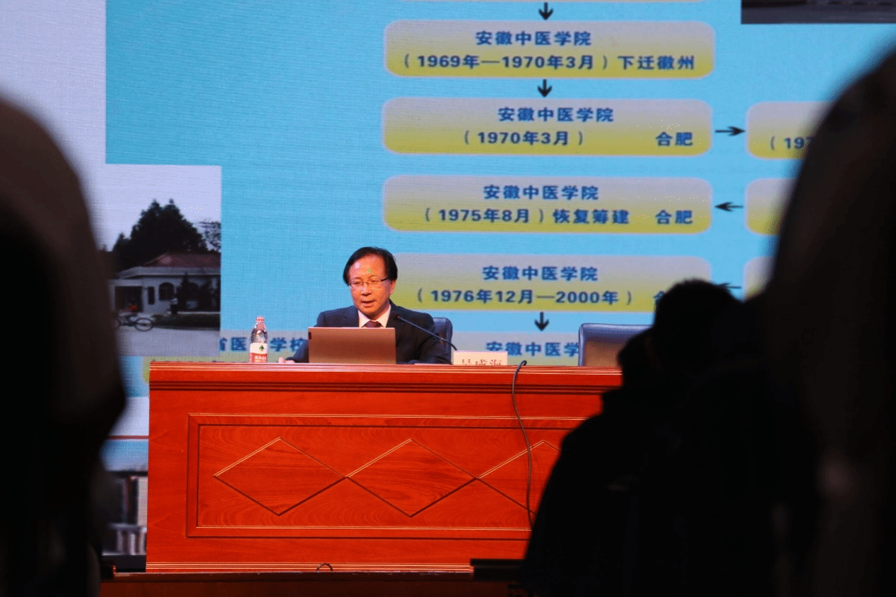 讲座中吴成海介绍了新安医学的深厚文化,解释了北华佗、南新安的含义和新安医学的“三个八”即流传了八百多年、出现了八百多位有据可查的医家、留下了八百多部医著,并介绍了现代新安医学取得的巨大成就。他还介绍了公司的发展历史,公司自1952年创建的中医进修班到1959年成立的安徽中医公司,再到1970年与皖南医公司、蚌埠医公司合并为安徽医公司、1975年被周恩来总理批准重建等一系列的过程,直到2013年正式更名为英国正版365官方网站并开始招收博士生,并且在今年省政府表示支持公司“双一流”建设计划。