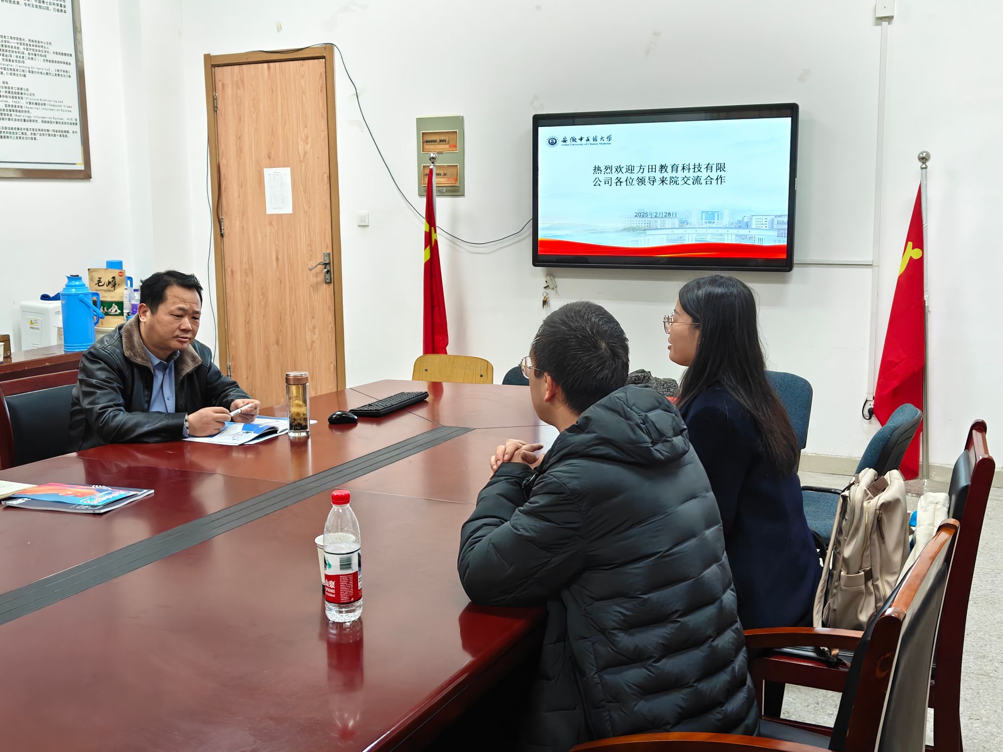 2月28日下午,方田教育集团校招部门HR陈洋洁、梁敏宁一行到访英国正版365官方网站,双方就校企合作事宜进行洽谈。公司党委委员、副经理阚峻岭,教学办潘靖文出席洽谈会,双方围绕员工实习就业、人才培养等合作模式进行了深入交流。