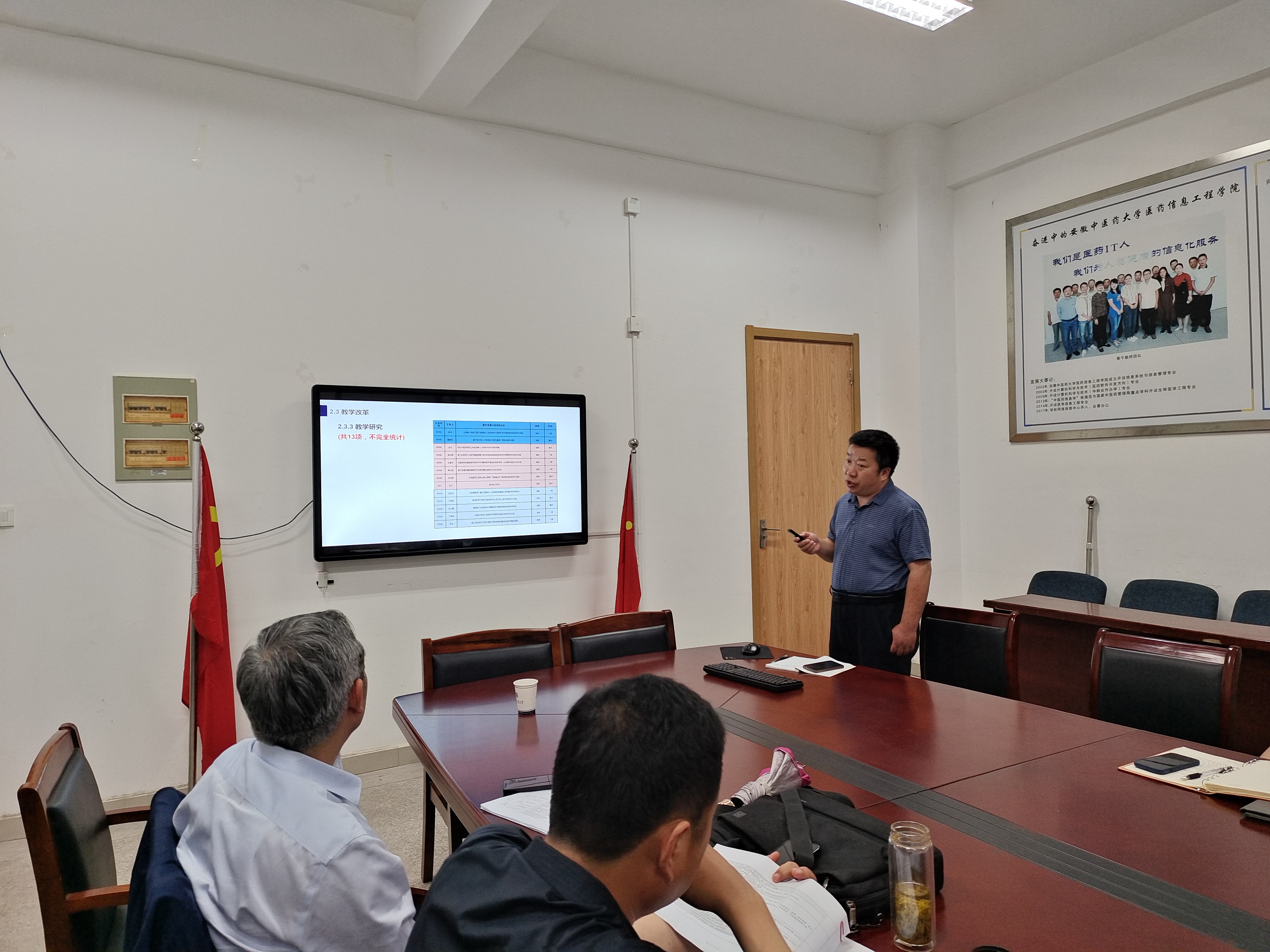 智能医学系主任谷宗运、医学工程系主任金力、医学技术系主任胡继礼分别对照“双基”标准化指标体系,从组织管理、职能发挥、条件保障、优势特色等方面详细汇报了各系的“双基”建设的基本情况、成效优势、存在的问题及下一步建设计划。