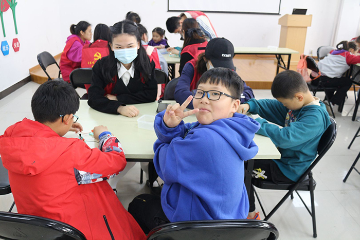 活动尾声,志愿者们与孩子们一起合影留念。(李赓、院记者团施国瑞/文图 吴成海/审核)