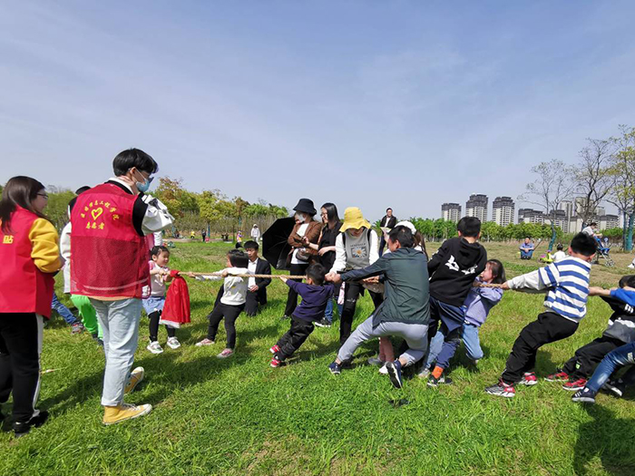 下午,志愿者们组织孩子们进行了两人三足、拔河等户外拓展游戏,进一步增进交流,也借此培养孩子们团队合作意识。