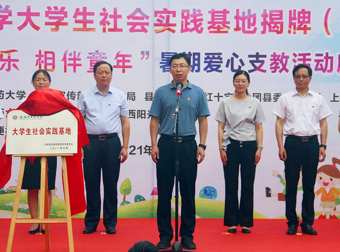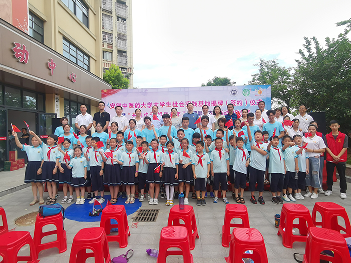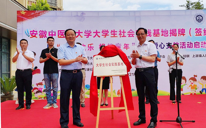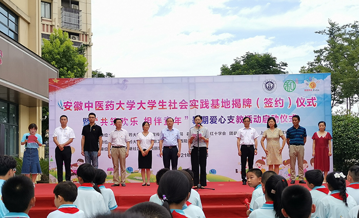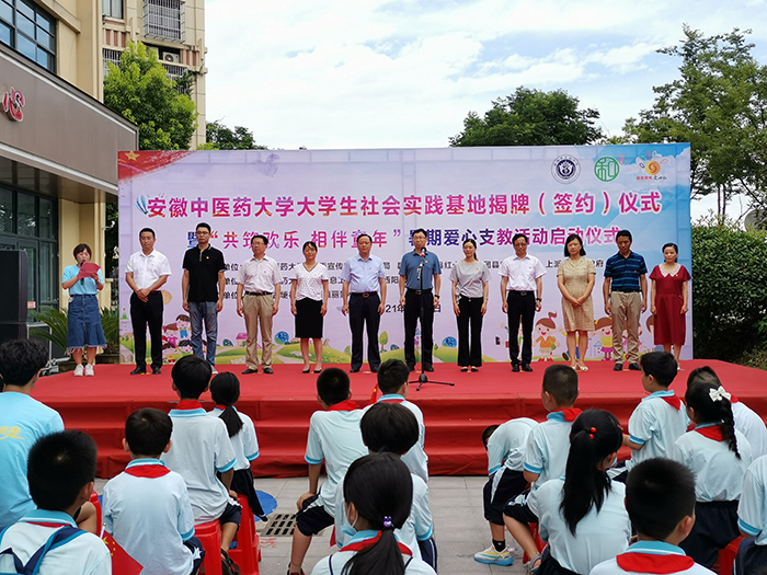 7月10日下午, 英国正版365官方网站在肥西县上派镇古埂社区举行老员工社会实践基地揭牌仪式暨“共筑欢乐 相伴童年”暑期爱心支教活动启动仪式。公司团委书记叶兰兰,公司党委书记吴成海,肥西县委副书记杨丙红,县委宣传部副部长杨松,县民政局副局长张龙翔,县教体局副局长徐润清,县团委副书记潘海波,县妇联副主席尹忠玲、县红十字会常务副会长赵友红,上派镇党委副书记谈建设和古埂社区党委书记姚峰出席,肥西县阳光爱心社志愿者、丽景小学相关负责人、公司“三下乡”志愿者及参加暑期小课堂的小朋友们参加了活动。