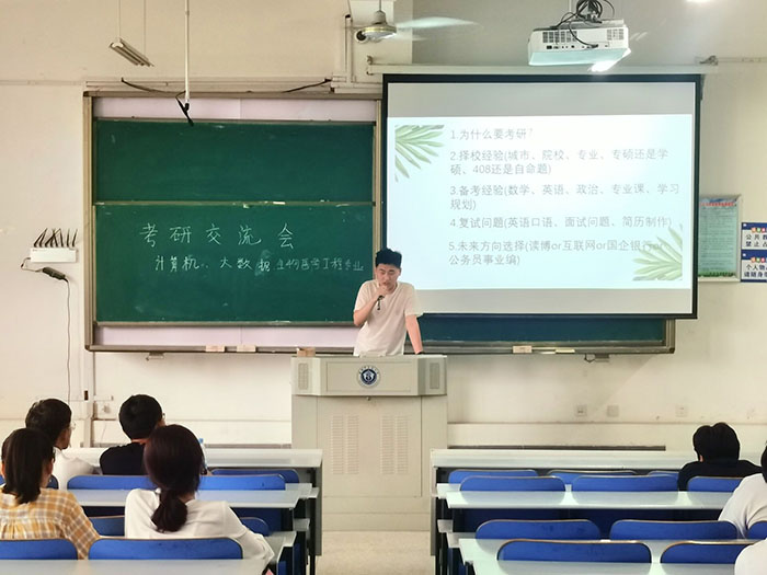 交流会上,学长们针对同学们的困惑进行了一一解答。交流会的举办提高了低年级同学的考研热情,帮助低年级同学进一步明确考研目标和学习规划。(信息公司记者团/供稿 吴成海/审核)