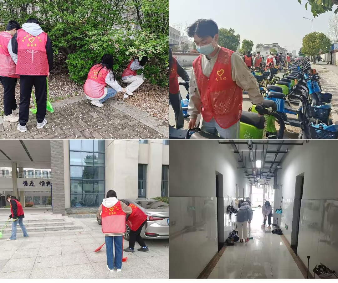 青春展风采,志愿从我行。各团支部鼓励团员从自身做起、从身边做起,开展一系列清洁环保、美化环境的活动。2021级计算机一班团支部在公司周边进行自行车规范摆放活动,2022级计算机三班、2021级生物医学工程班和2021级计算机3班等团支部在公司、周边公园、社区开展卫生清洁活动,营造更好的学习和生活环境。