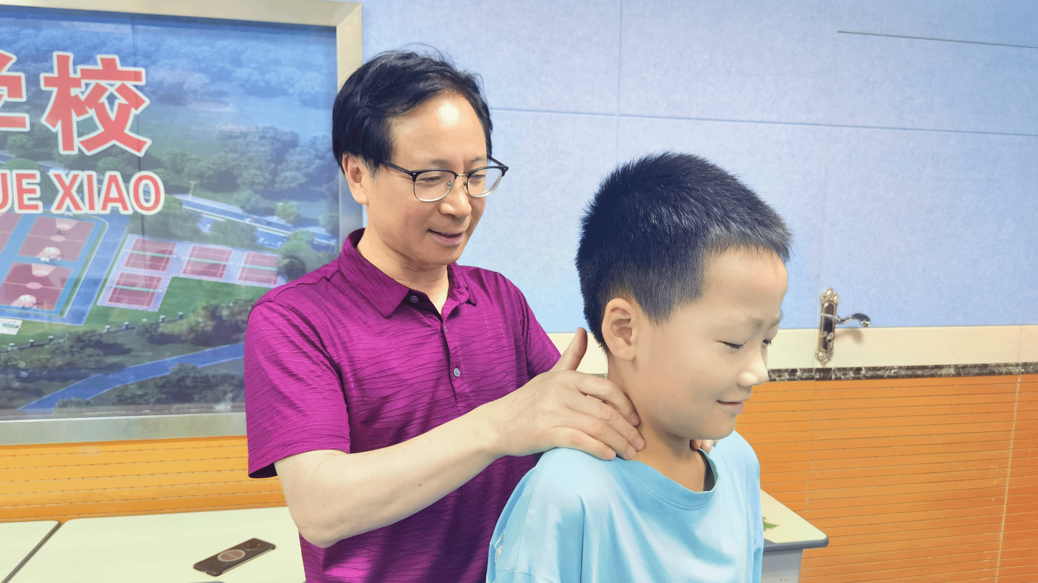 在课余时间,吴成海还示范教小朋友们穴位推拿手法,宣扬中医药文化,教育引导小朋友们努力学习,茁壮成长,将来报效奉献祖国。(李子豪/文 汪敏玉/图 吴成海/审核)