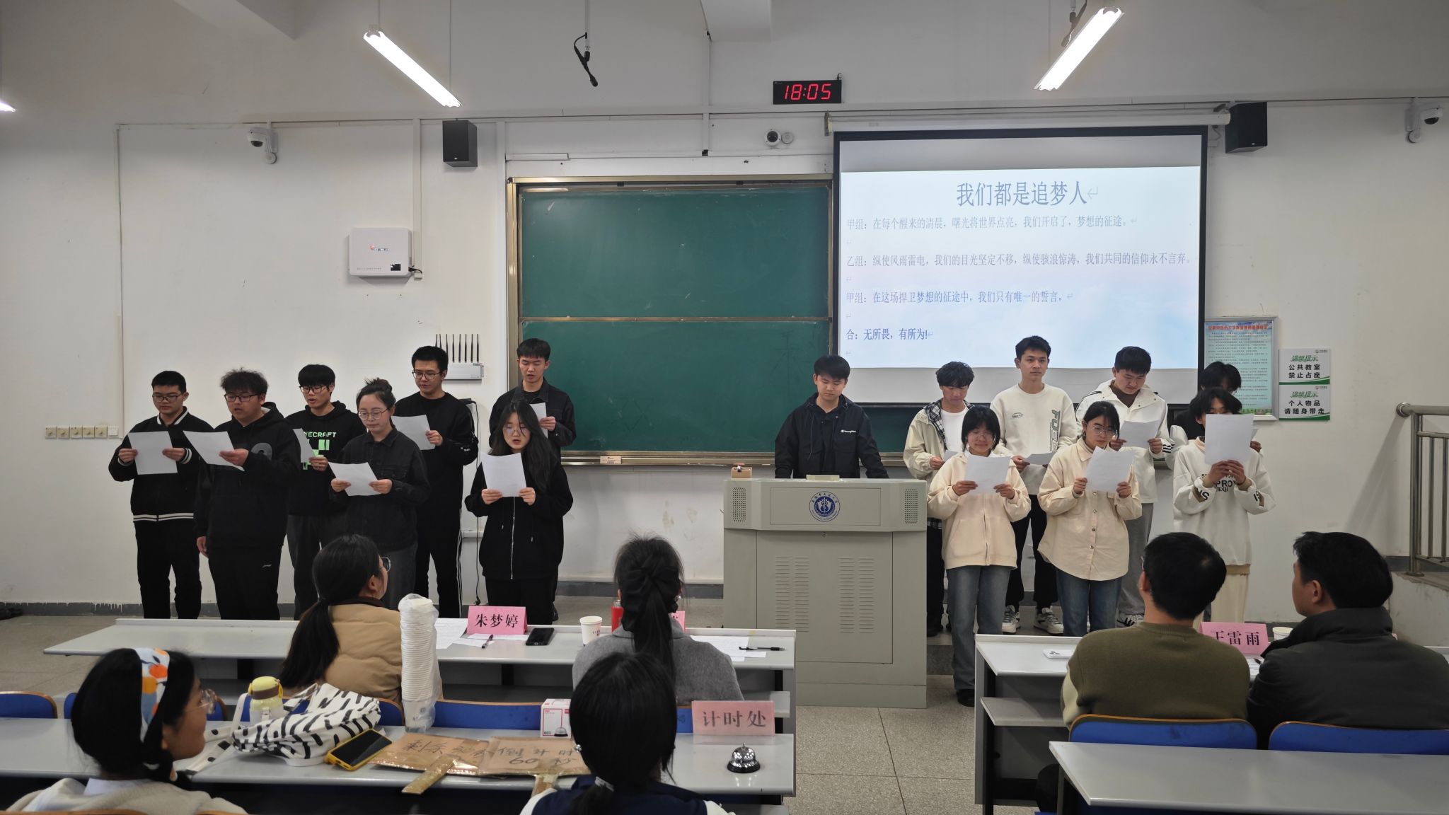比赛中,参赛班级先以现场宣讲为导入,通过播放班级的幻灯片或视频短片,展示同学们的学习风貌及日常生活。在回顾了班级的成长历程中,表现出每一位员工对身在班级中的幸福感与归属感,以及对美好未来的期待。