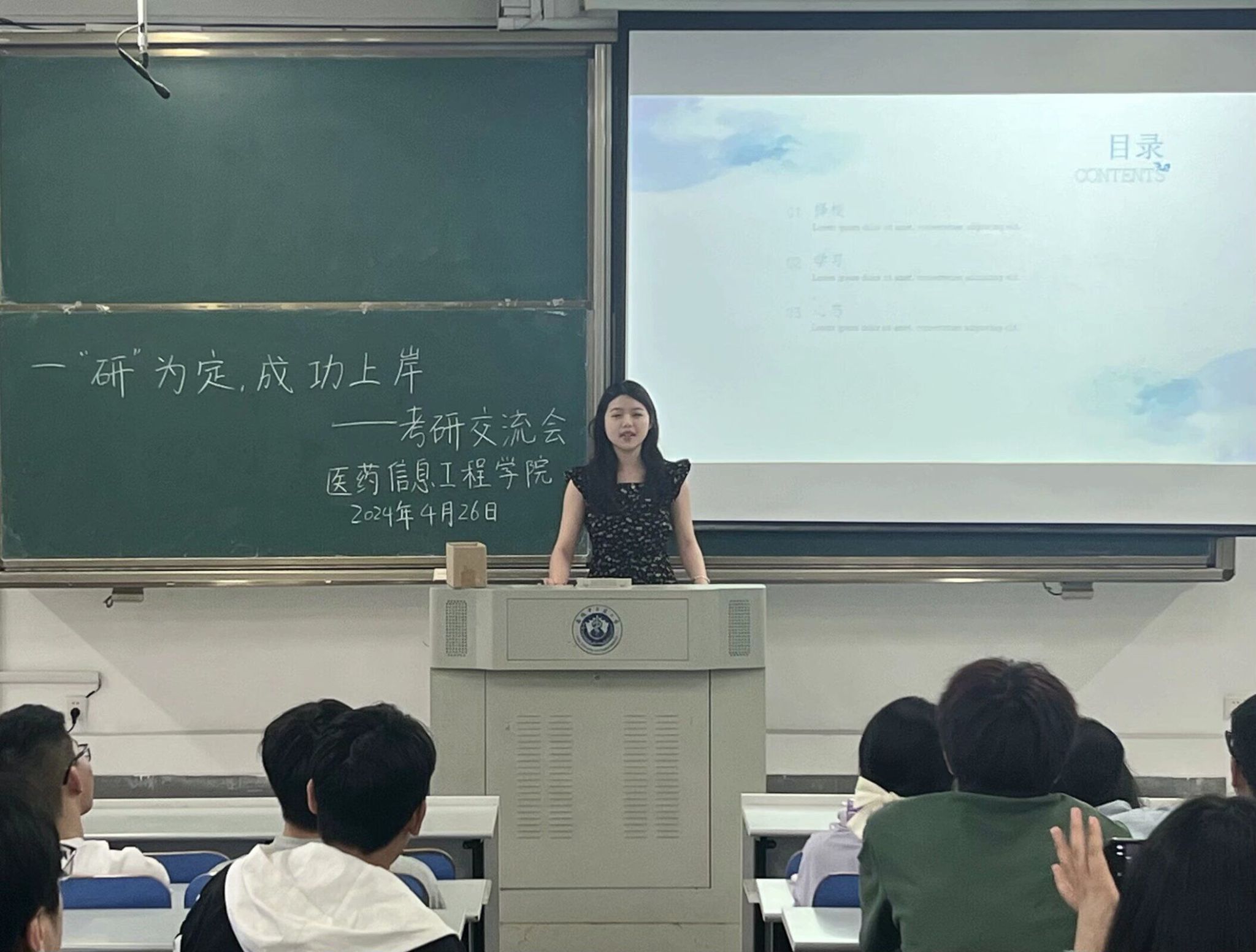 接下来,黄杉也分享了自己的考研经历。她重点谈到了在备考过程中如何保持心态平衡。黄杉表示,考研是一项极具挑战性的任务,过程中难免会遇到挫折和困难,关键是要学会调整心态,保持积极向上的心态。她还提醒同学们在备考过程中要互相鼓励、互相帮助,共同进步。
