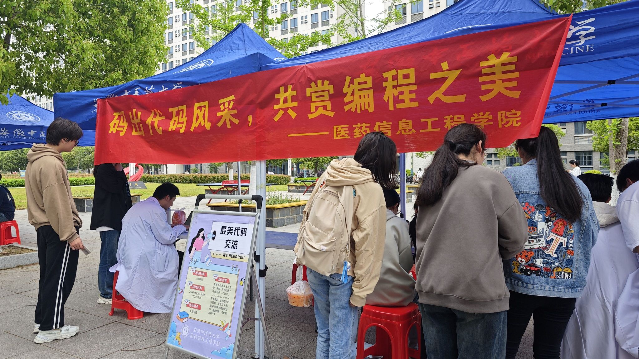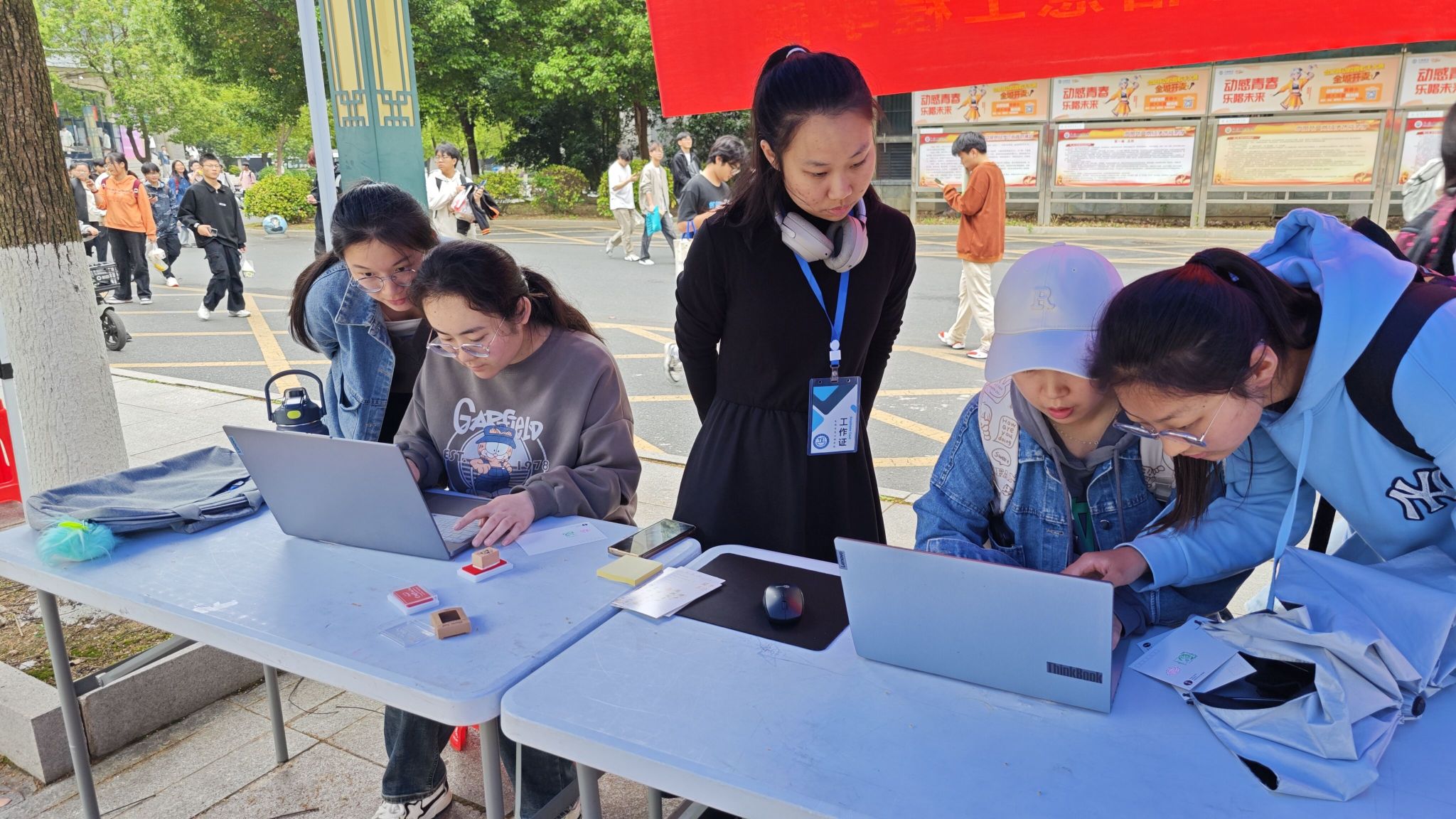 “线上线下,树立新风”。本次摆台活动主要以开展电脑义诊问答、代码交流、互联网+传统运动体验三项服务为主要内容。