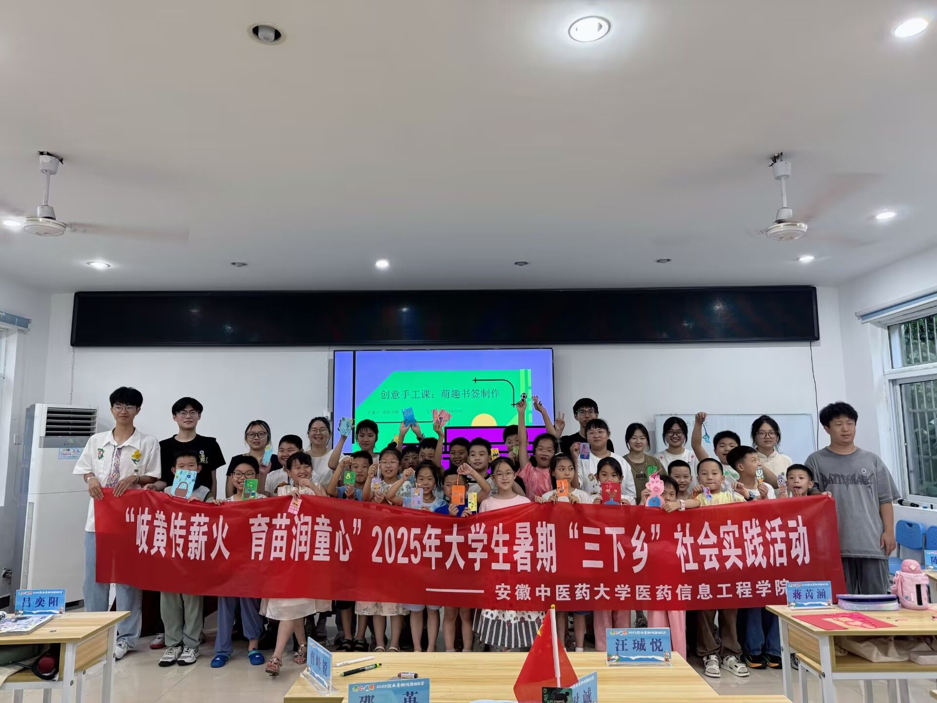 在黄山歙县,“岐黄育苗”实践团队深度参与当地“青心送暖”2025暑期鸿雁自习室项目。该项目由歙县县委社工部、县文明办、县总工会、团县委联合主办,旨在切实解决职工家庭子女暑期“看护难”问题。作为首批老员工志愿服务团队,“岐黄育苗”实践团充分发挥专业优势,精准对接青少年兴趣与成长需求。他们精心设计并开设了融合中医药文化智慧、AI趣味启蒙、历史知识普及与爱国情怀培育的特色课程体系。这些课程不仅丰富了孩子们的假期生活,更在寓教于乐中拓展了视野,激发了学习兴趣。