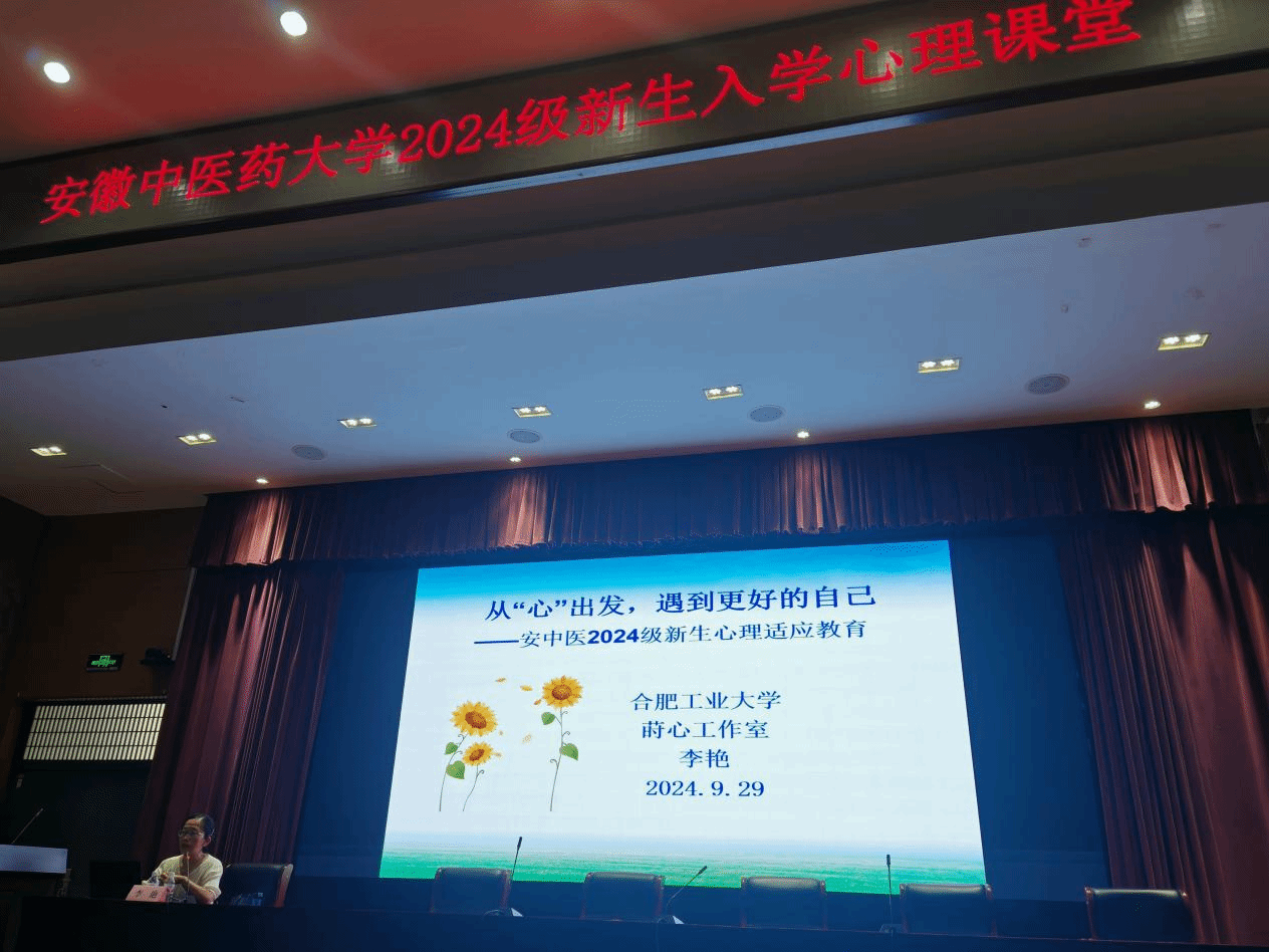 本次讲座邀请了合肥工业大学教授李艳,以“从‘心’出发,遇见更好的自己”为题作讲座。李艳首先强调了在大学期间拥有完整清晰的自我认识的重要性,以及新生在步入大学阶段可能会遇到的各种心理问题和挑战。她向师生们展示各种典型案例,并针对问题进行分析,总结出新生如何在步入大学这一新阶段认识自我。最后,李艳强调认识自我只是心理健康的第一条件,心理健康要得到保障一定要有积极的心态,并指出遇到心理压力要及时寻求专业的帮助。