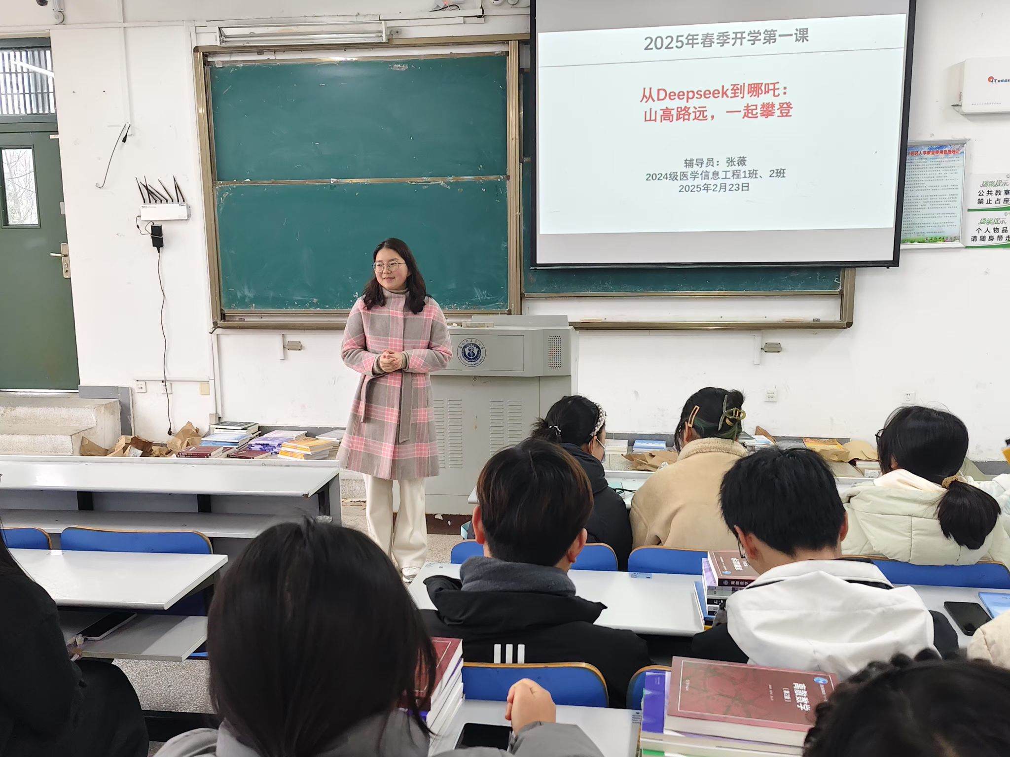 辅导员张薇结合假期Deepseek人工智领域的技术突破热点,立足专业特色,开展职业生涯规划教育,引导员工将个人理想融入国家发展大局;充分引用当下热映的《哪吒2》背后的计算机建模、渲染等技术更新,勉励员工新学期将个人爱好充分与计算机专业知识结合,促进自身全面发展。