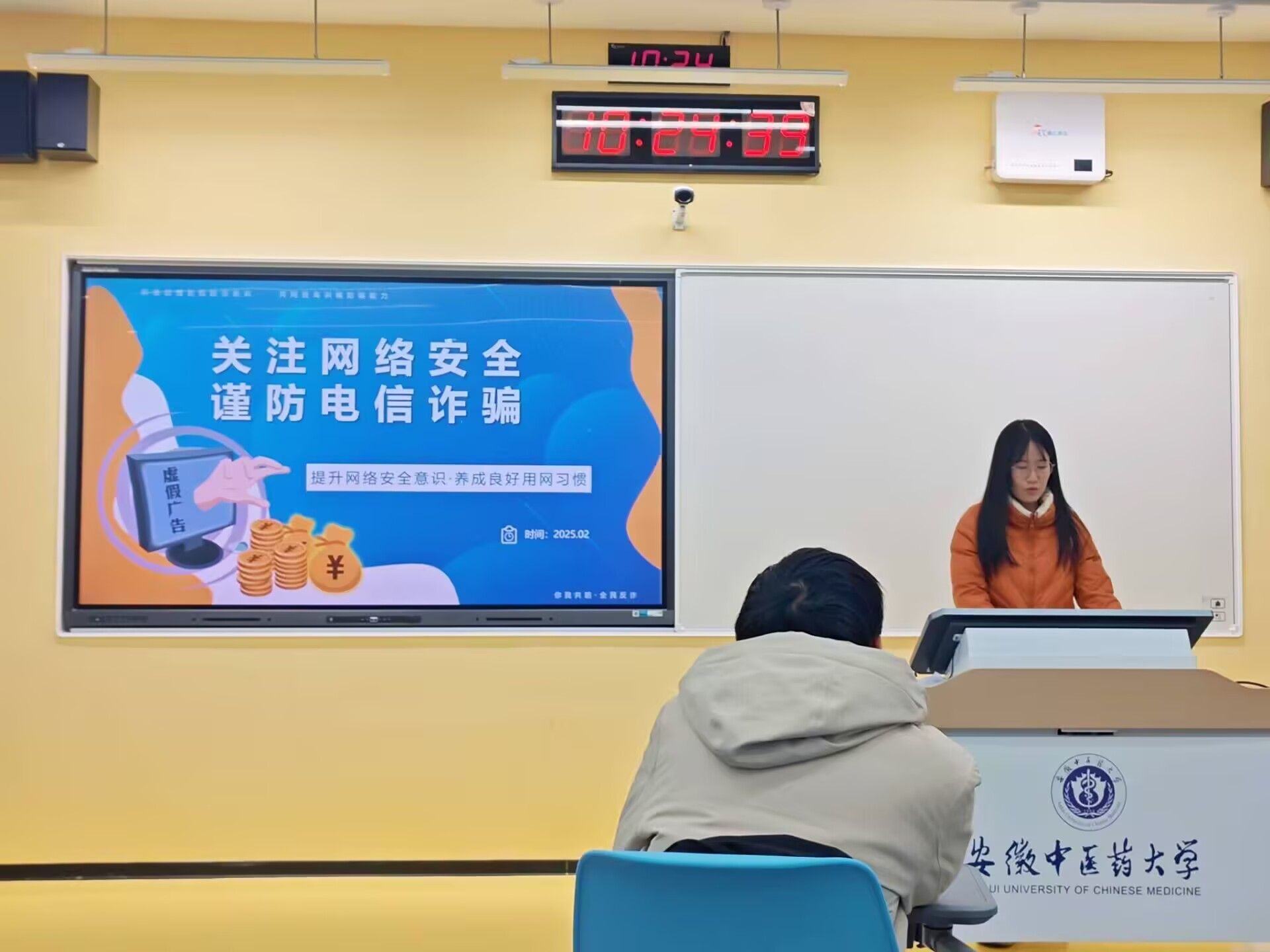 柯凡君认真梳理校园安全,全面细致普及校园消防安全、取暖安全、校园公共设施安全等基本知识和有关规章制度,并重点针对新学期防电信诈骗开展警示教育。其他辅导员同时针对“开学综合征”、学业压力、人际关系等员工关切问题开展心理健康专题教育。