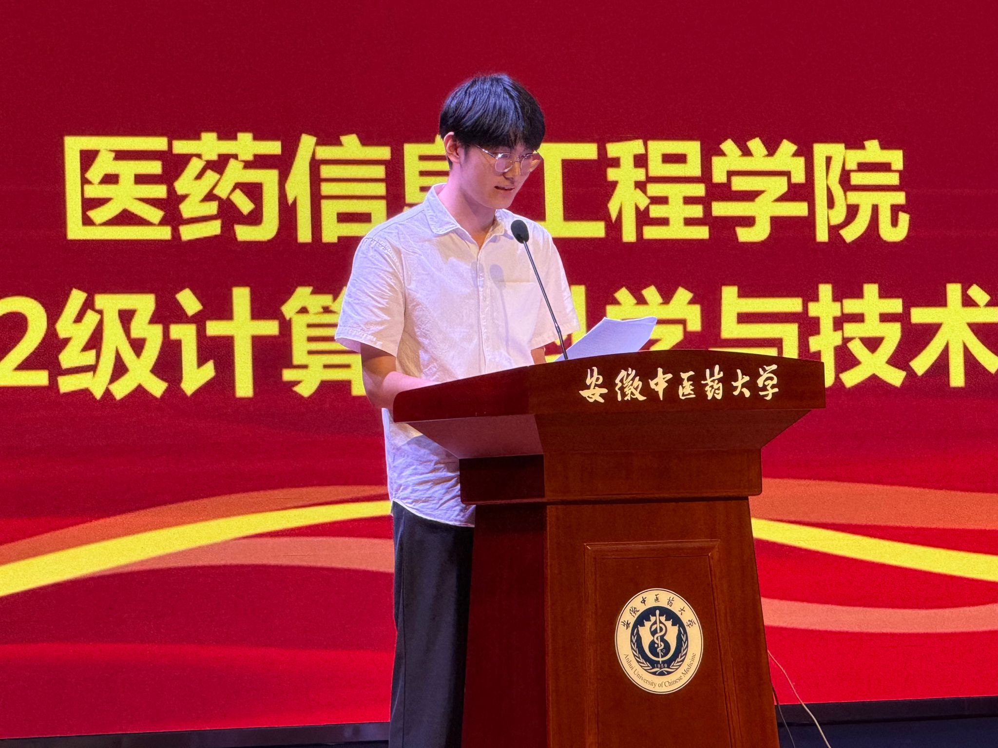 2022级计算机三班张冠宇作为老生代表发言,他结合自身经历,建议新生明确努力方向,做好学习规划,把握自身学习节奏,奋勇向前,以青春之名、赴成长之约,以实际行动践行“至精至诚,惟是惟新”的校训精神。