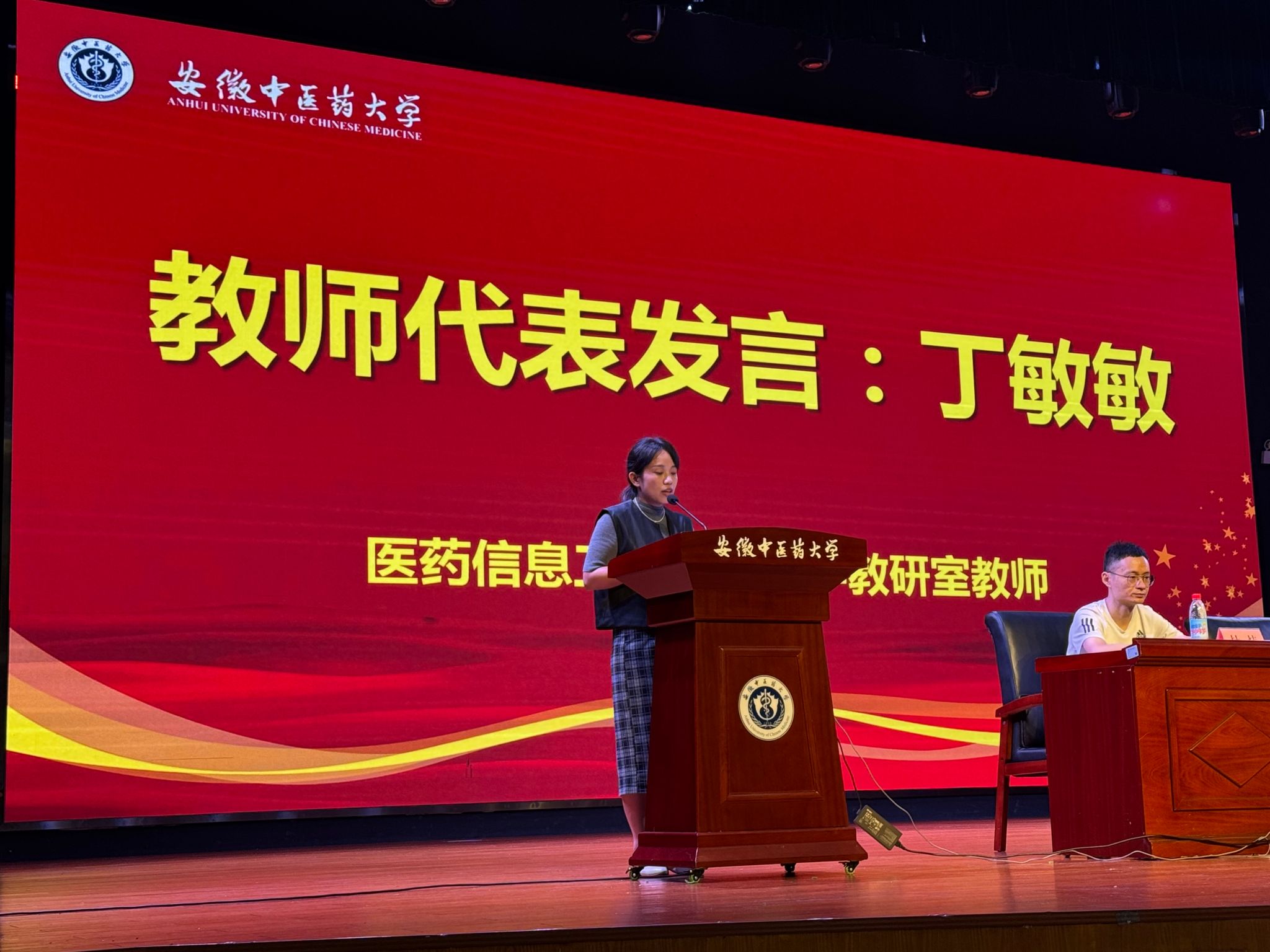 数学教研室教师丁敏敏作为教师代表发言,她鼓励大家为精准医疗提供数据支持,并结合个人经历,以课本故事为引,寄语新生要努力奋进,挖掘自身优势,发挥“长板效应”,勇于探索、充实自我,成为国家和社会需要的紧缺人才。丁敏敏表示,作为教师代表,将和全体教职工一起全力为同学们成长提供支持。