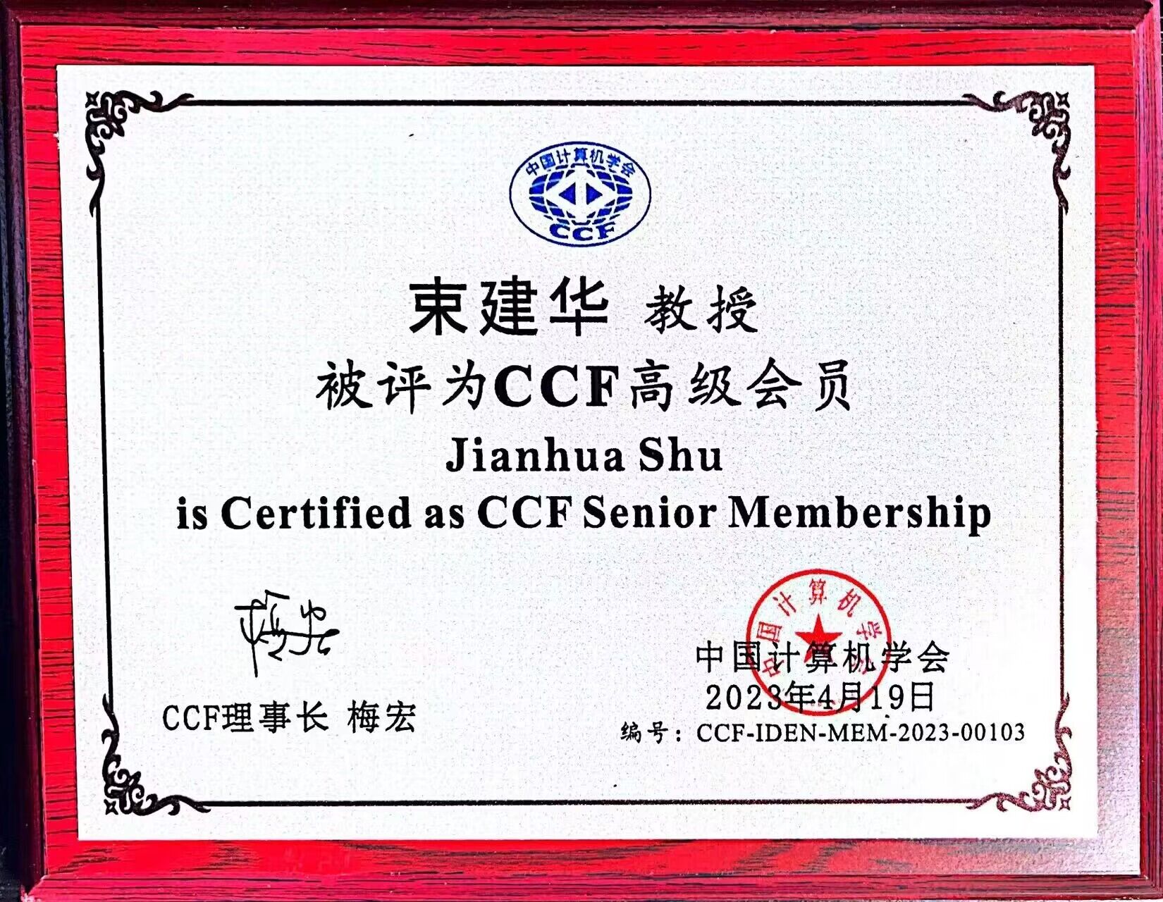 近日,英国正版365官方网站束建华教授在2023年度会员评选中当选为中国计算机学会(CCF)高级会员(Senior Membership)。