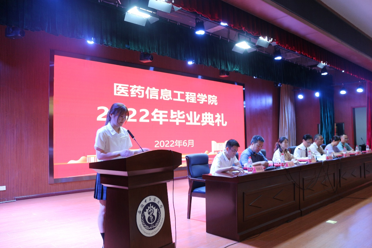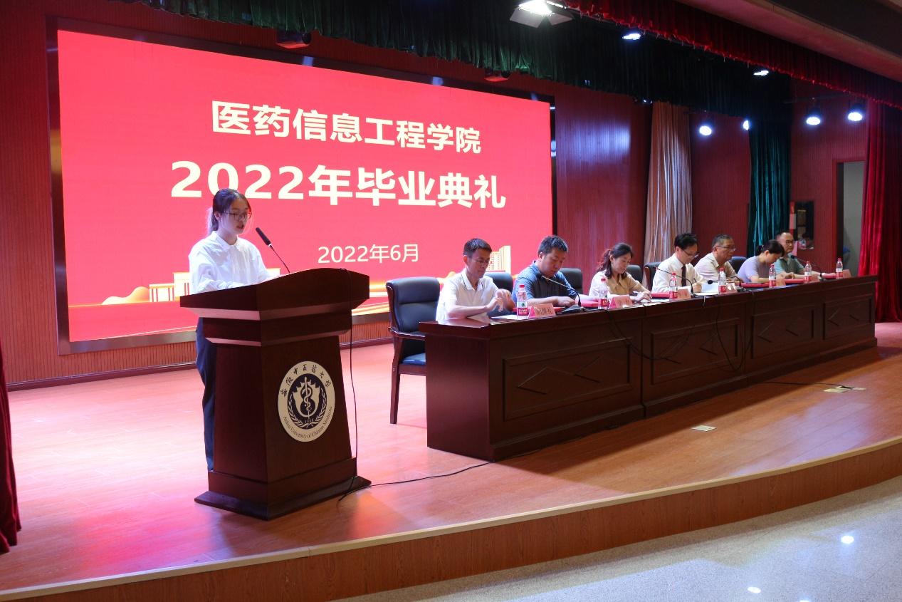 2018级计算机科学与技术(1)班项雪、2019级医学信息工程班凤羽娴,分别代表2022届毕业生和在校生发言,表达感恩,送去祝福。