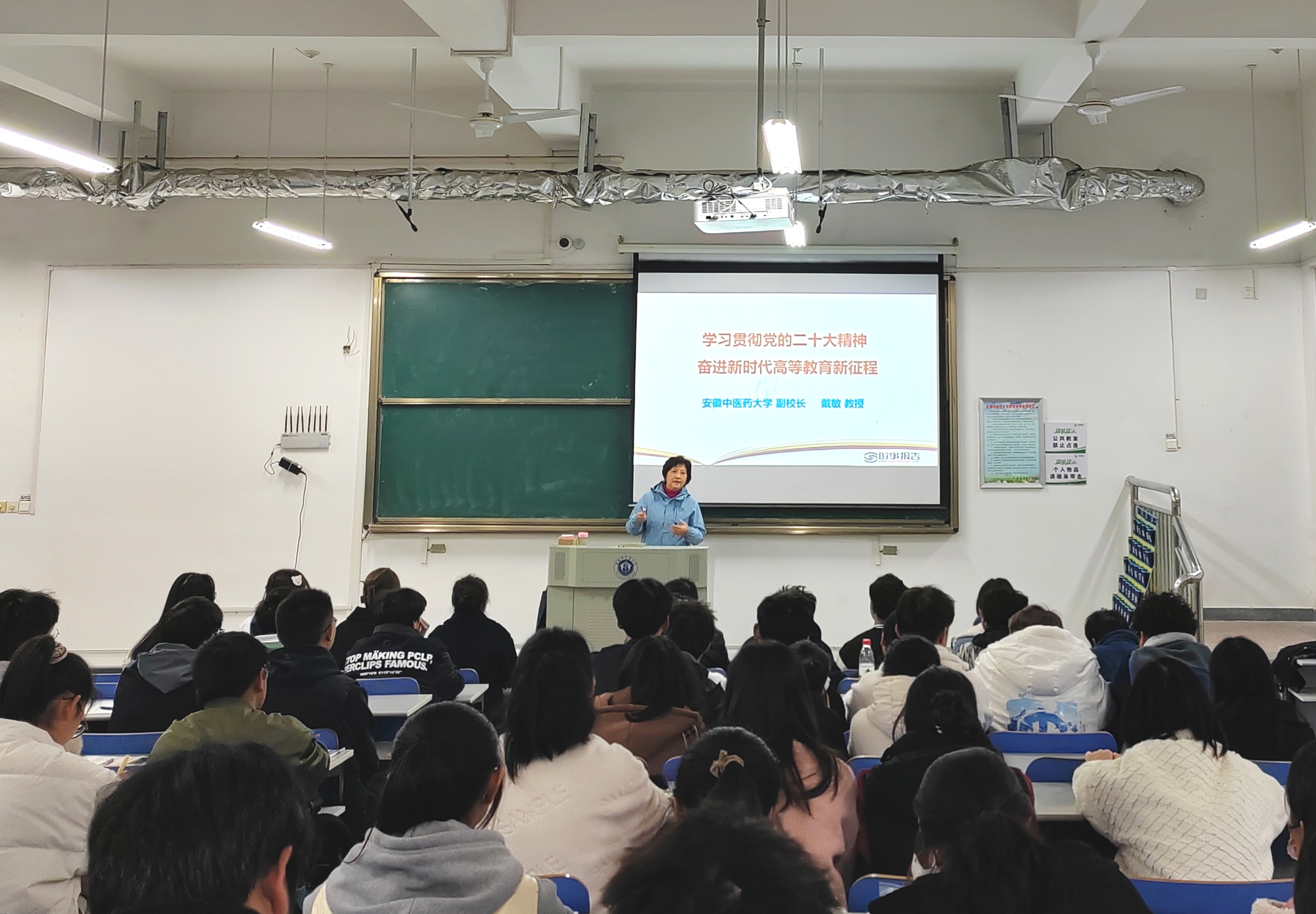 戴敏紧密围绕高等教育发展新转变、世界高等教育发展趋势、迈入高等教育新时代等三个方面,回顾了我国高等教育改革发展的奋进之笔,强调要遵循高等教育和中医药发展规律,着力培养出一流本科人才。她鼓励员工深入思考“我上大学为什么、我上大学学什么、我大学毕业干什么?”三个命题,引导员工深刻认识人生的意义与责任,懂得要注重知识、能力和素质的培养,以成就更好的自己。