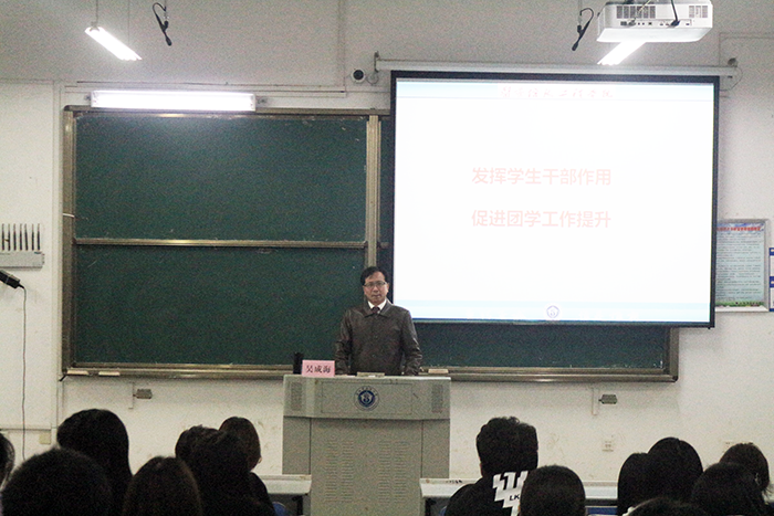吴成海首先带领大家学习了习近平总书记关于教育、关心青年的有关重要讲话精神,并强调,员工干部要积极主动培养班级的团结精神与学习风气;要自觉承担起责任,坚定理想信念,加强品德修养,增强综合素质。他从如何认识员工干部、员工干部的工作职责、如何履行好岗位职责及如何提升员工干部的素质能力等方面进行了详细介绍。他结合工作实际,阐述了员工工作的原则、方法,详细列举了员工常规性、主要时令性、重要节点的活动,并对班级管理工作和活动开展进行全面指导,鼓励员工干部发挥好模范带头作用,深入细致的开展工作。