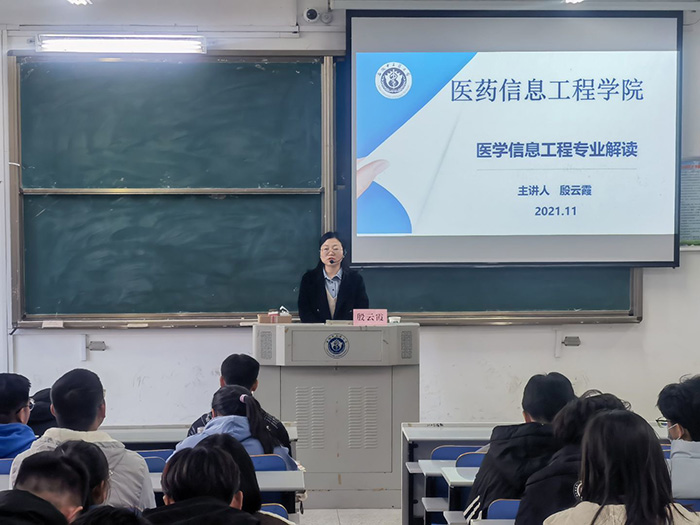 11月24日英国正版365官方网站举办了医学信息工程专业的新生专业思想教育。医学信息专业负责人殷云霞主讲。