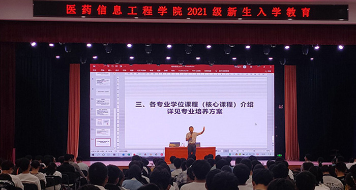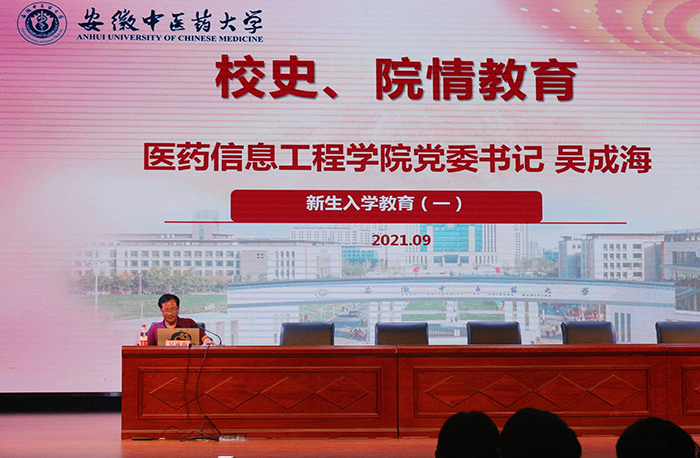 吴成海为同学们开展校史、院情教育。他结合自己的亲身工作经历,带2021级新生们了解了公司从最初的建校,到之后的发展历程,并着重介绍了公司在各方面取得的丰硕成果。随后,他介绍了公司的建立后的发展历程,并列举了公司近些年在各类比赛上取得优异成绩,并勉励新生要牢记使命,找人生好目标,使四年老员工活能够更加充实。