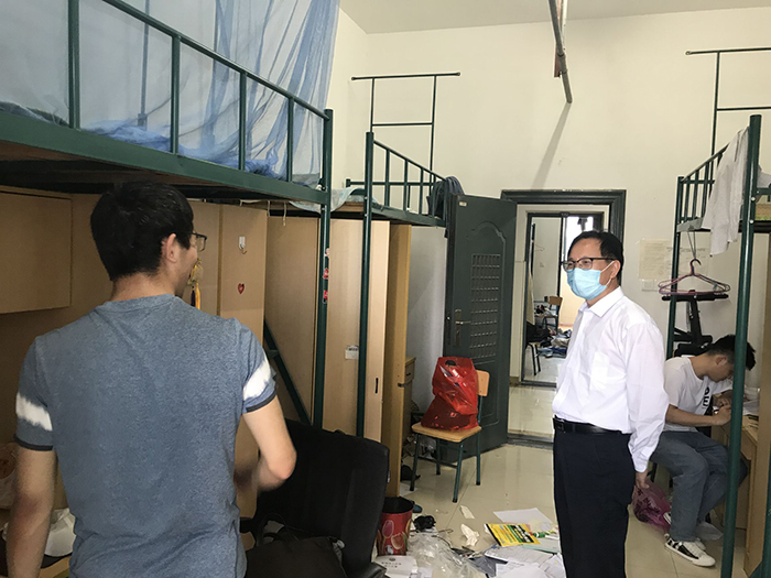 公司党委书记吴成海积极深入员工宿舍,了解员工思想动态,并要求大家遵守公司公司的相关规定,按时有序安全地离校。