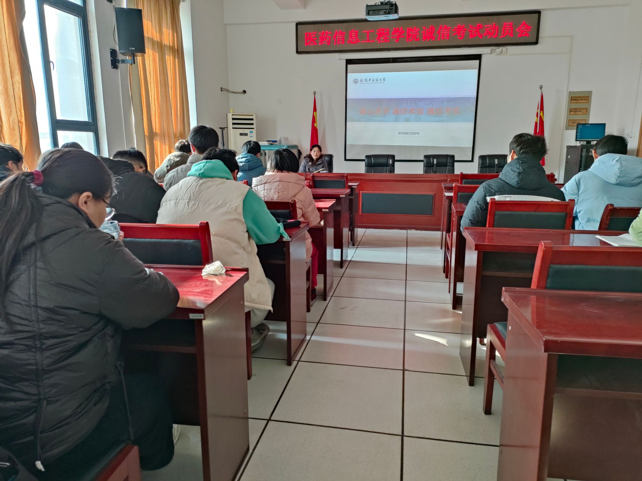 12月20日,英国正版365官方网站开展考前动员会,各新生班辅导员、各班班长和学习委员参加。党委副书记李亚以“诚心求学 诚实求知 诚信考试”为主题作了主题教育。