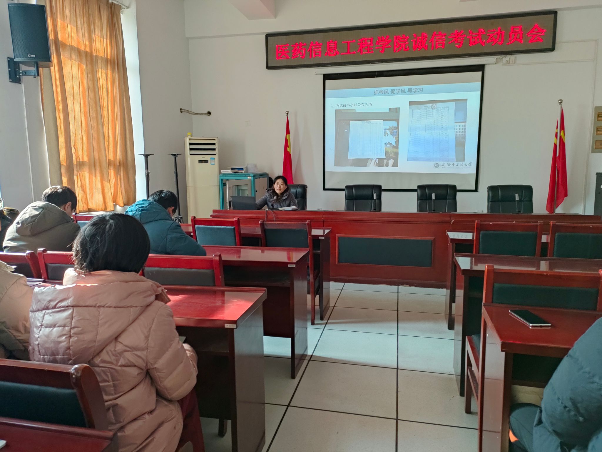 李亚要求,一要注重考前心理调适与应对,要帮助同学缓解考试焦虑、积极备考,班委、党员要以身作则,发挥带头作用;二是明晰公司考务管理,要引导同学了解考场分布、K值排列以及考场警示语的规范书写,要“端正考风、严肃考纪”,落实三级巡考、辅导员要全程陪考;三是要组织学习考场规则,提醒同学携带考试证件、服从监考老师指挥、按时参加考试;四要突出诚信考试的要求,要通过身边员工违纪行为加以警示教育,要重温公司学年学分制管理规定和学位授予办法。