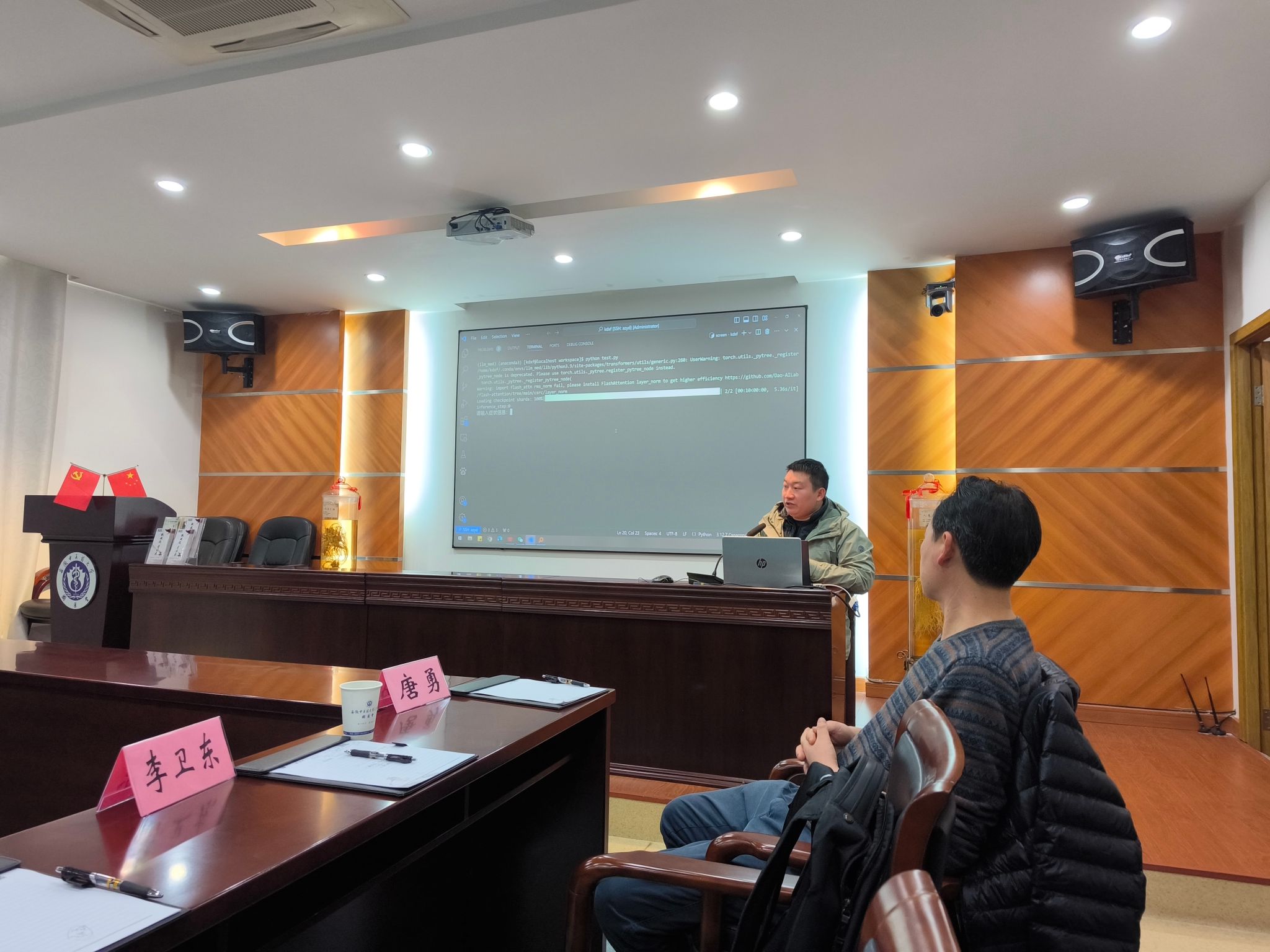 科大讯飞工程师李卫东汇报了研发情况,并利用大模型对多例病案进行了现场演示。