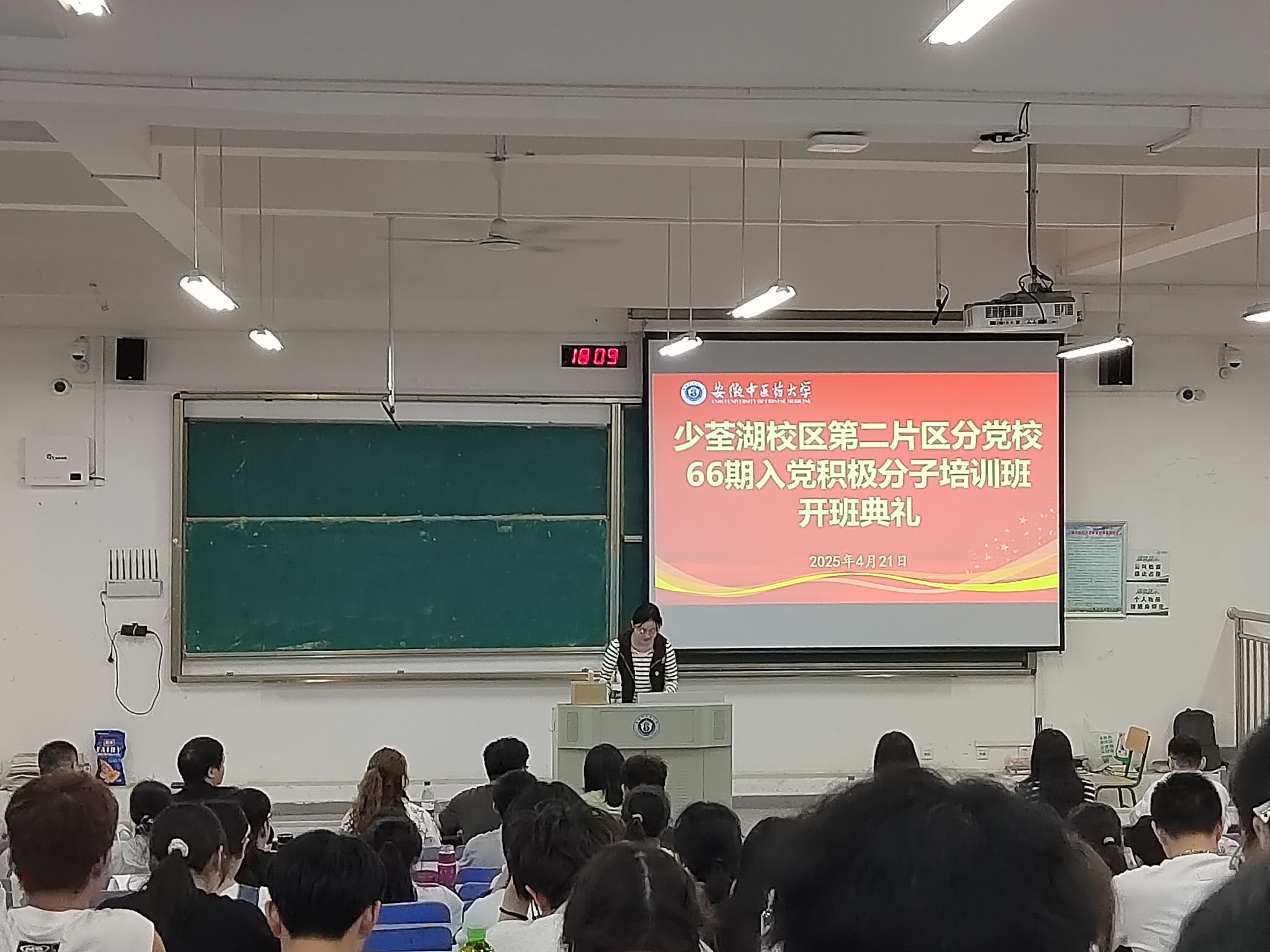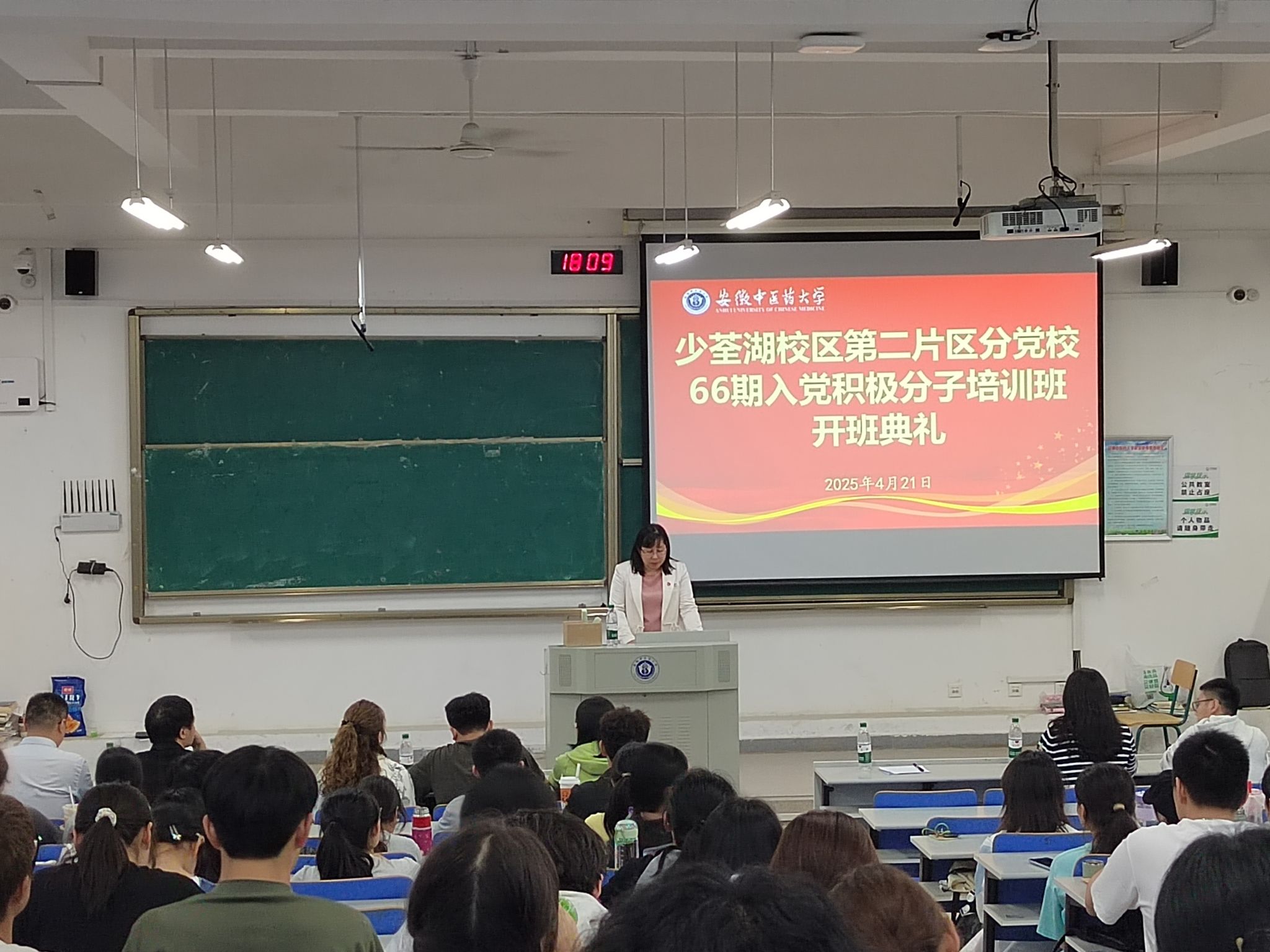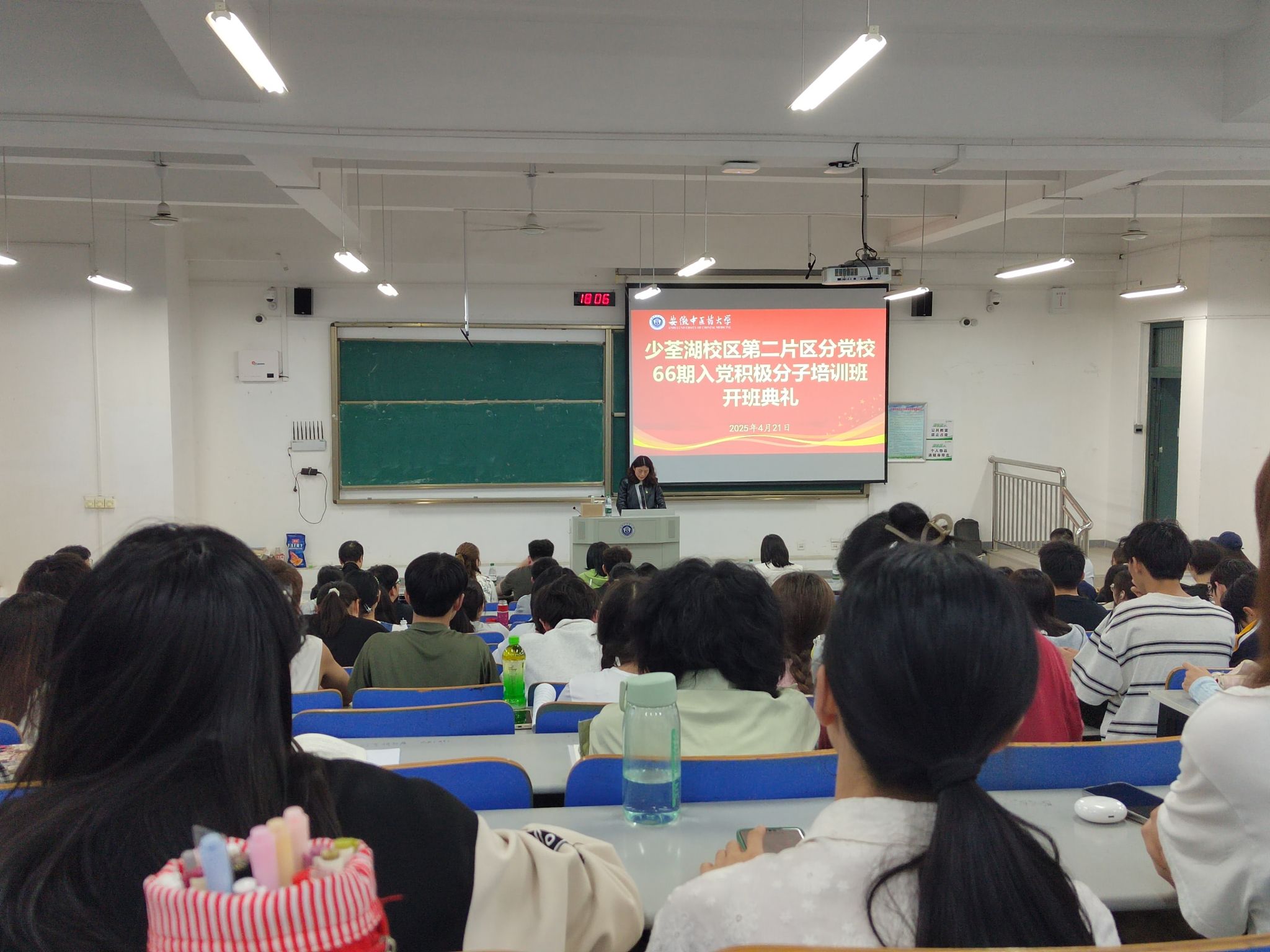 开班仪式后,宋婷婷以《认真学习党章 严格遵守党章》为题为全体学员上了第一堂党课。(潘兴娜/文 新媒体中心/图 高霞/审核)