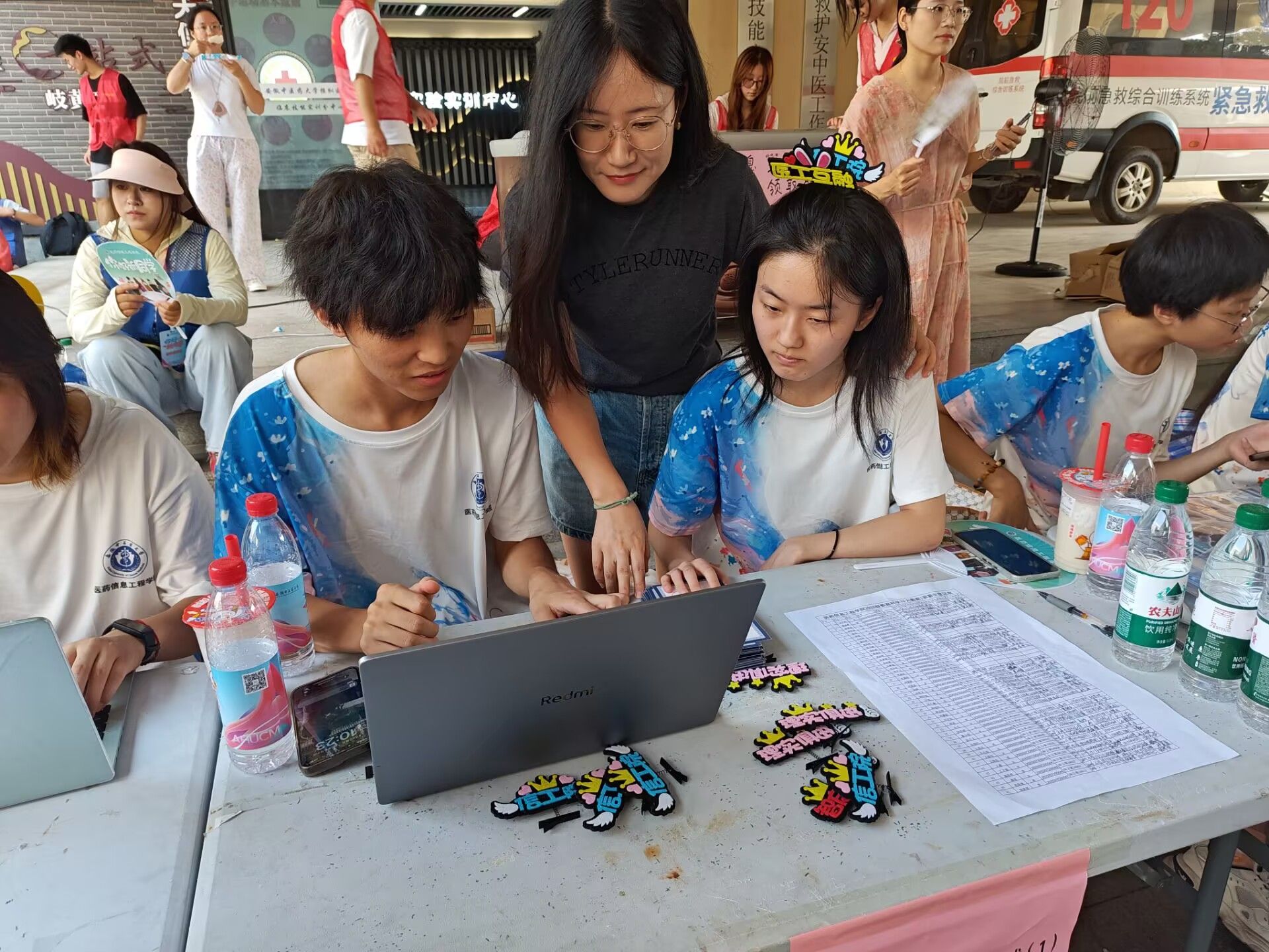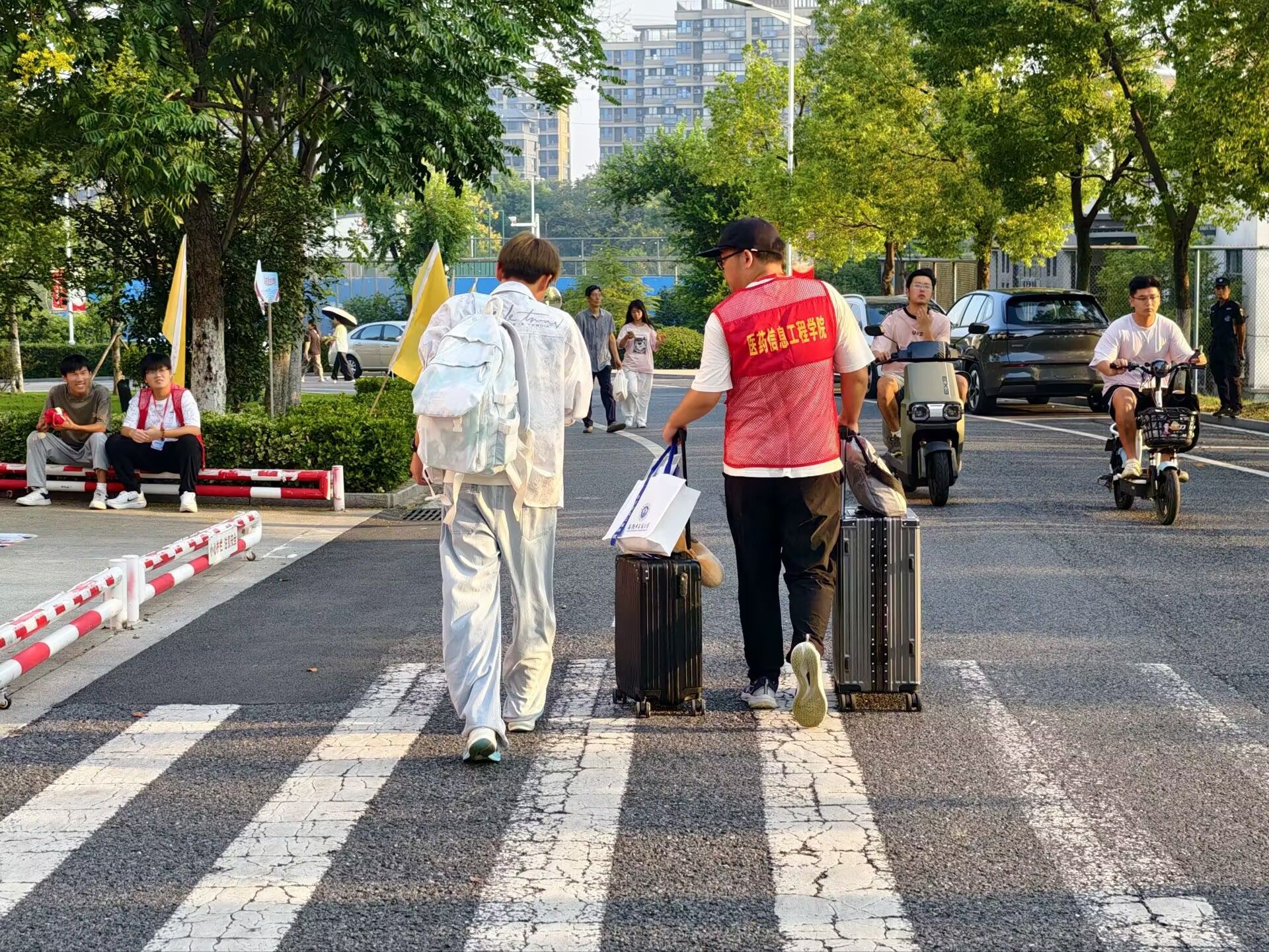 在此次迎新过程中,公司志愿者表现突出,以他们热情周到的服务赢得了公司领导老师们、家长、新生们的一致好评。一大清早,志愿者们已准备就绪,身着统一服装,面带笑容迎接每一位新生与家长,分工明确、耐心细致地完成检录报到、物品发放、拍照记录、文化展示和行李搬运等多项工作,成为迎新现场一道亮丽的风景线。