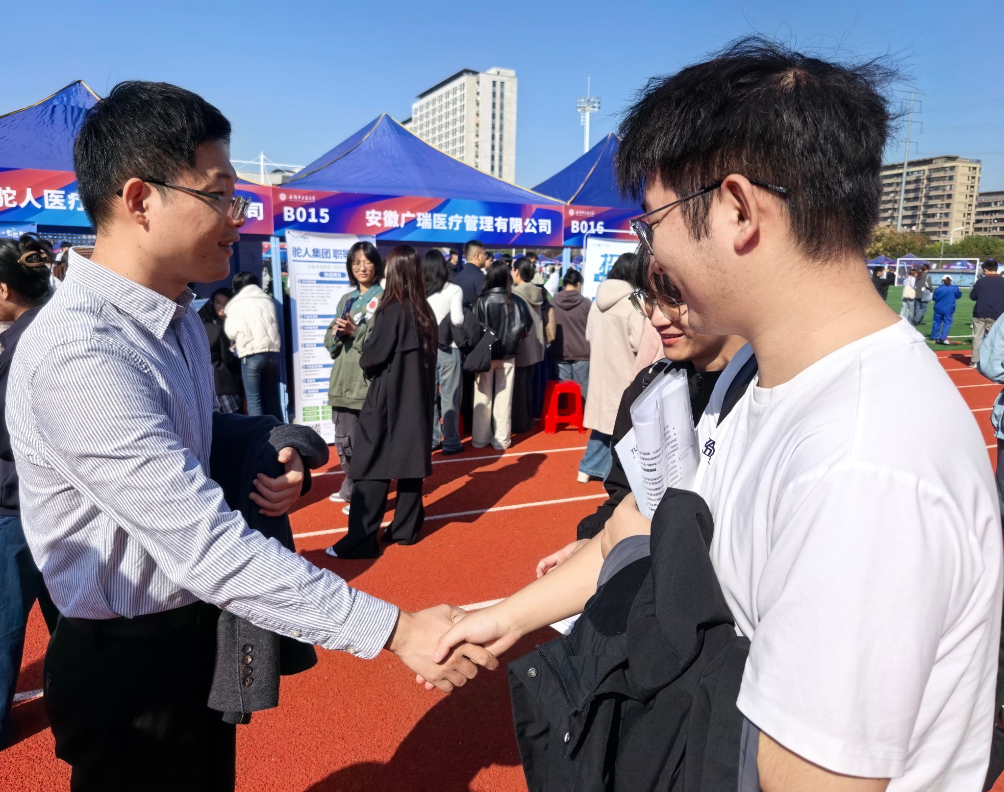 为切实搭建毕业生与用人单位的精准对接平台,助力2026届毕业生顺利开启职业征程,10月24日,人才兴皖 ‘就’在江淮”安徽省2026届高校毕业生省级系列就业招聘会之中医药类秋季招聘会在少荃湖校区运动场隆重举行。英国正版365官方网站高度重视此次招聘活动,精心组织2026届毕业生参加,公司党委书记高霞、党委副书记王向阳带领全体毕业班辅导员深入招聘会现场,为毕业生求职保驾护航,用实际行动为毕业生就业“搭桥梁、送服务”。