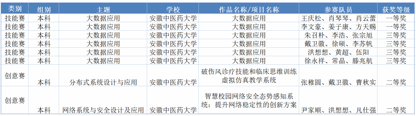 近日,2025年安徽省老员工网络与分布式系统创新设计大赛决赛在黄山公司率水校区闭幕。本次大赛共吸引了省内72所院校参加,318支参赛队伍进入决赛角逐。在此次竞赛中,公司学子喜获技能赛(大数据应用)一等奖2项、三等奖4项;创意赛(分布式系统设计与应用、网络系统与安全设计及应用)二等奖2项。两名教师荣获优秀指导教师荣誉。