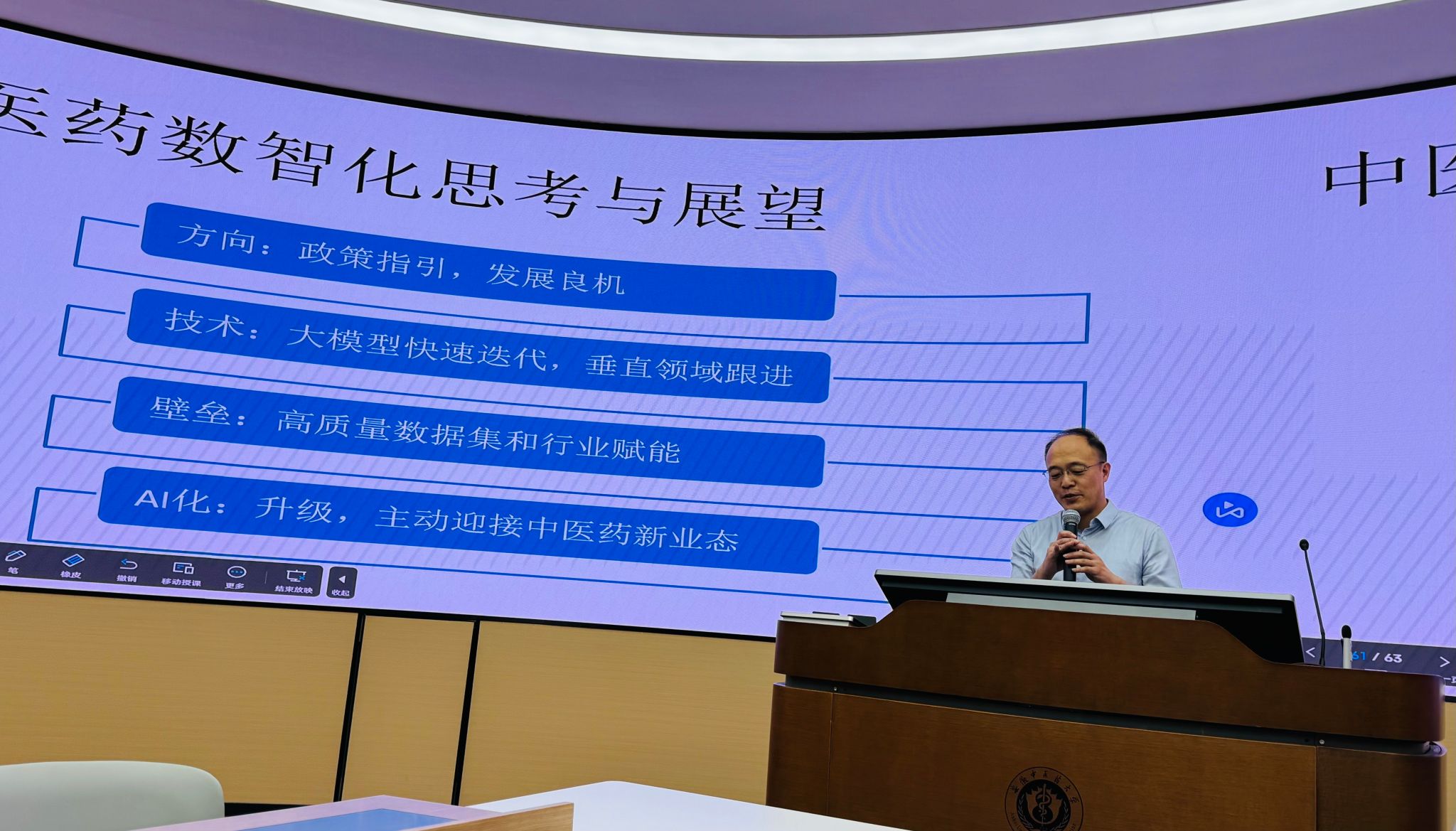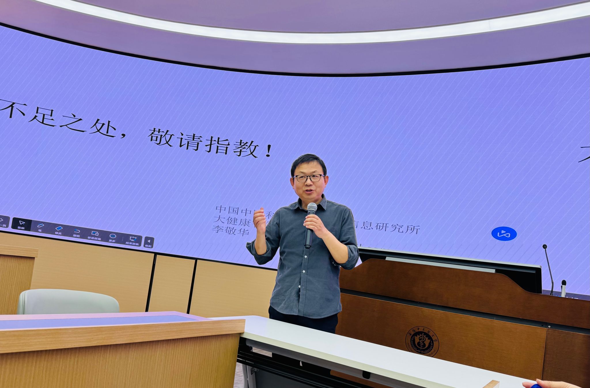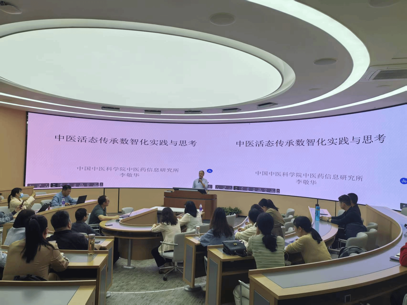 4月18日,中国中医科公司中医药信息研究所大健康智能研发中心主任,李敬华研究员应邀来校作题为:“中医活态传承数智化实践与思考”的学术报告。报告会由公司党委副书记、经理阚红星主持,公司全体教师及研究生参加学习交流。