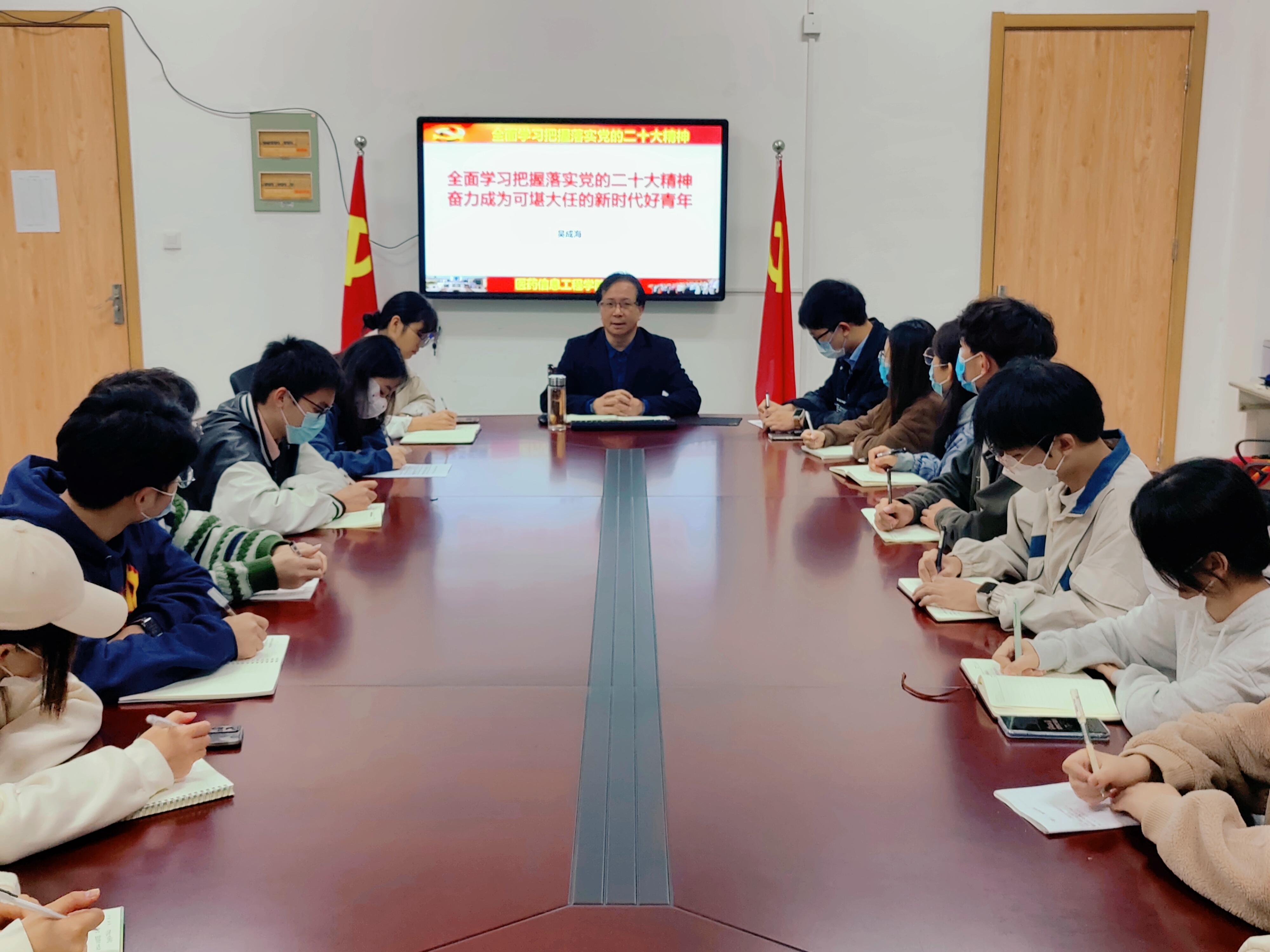 10月26日晚,公司党委书记吴成海向员工干部传达学习贯彻党的二十大精神,公司分团委负责人李士婷,员工会全体干部参加会议。