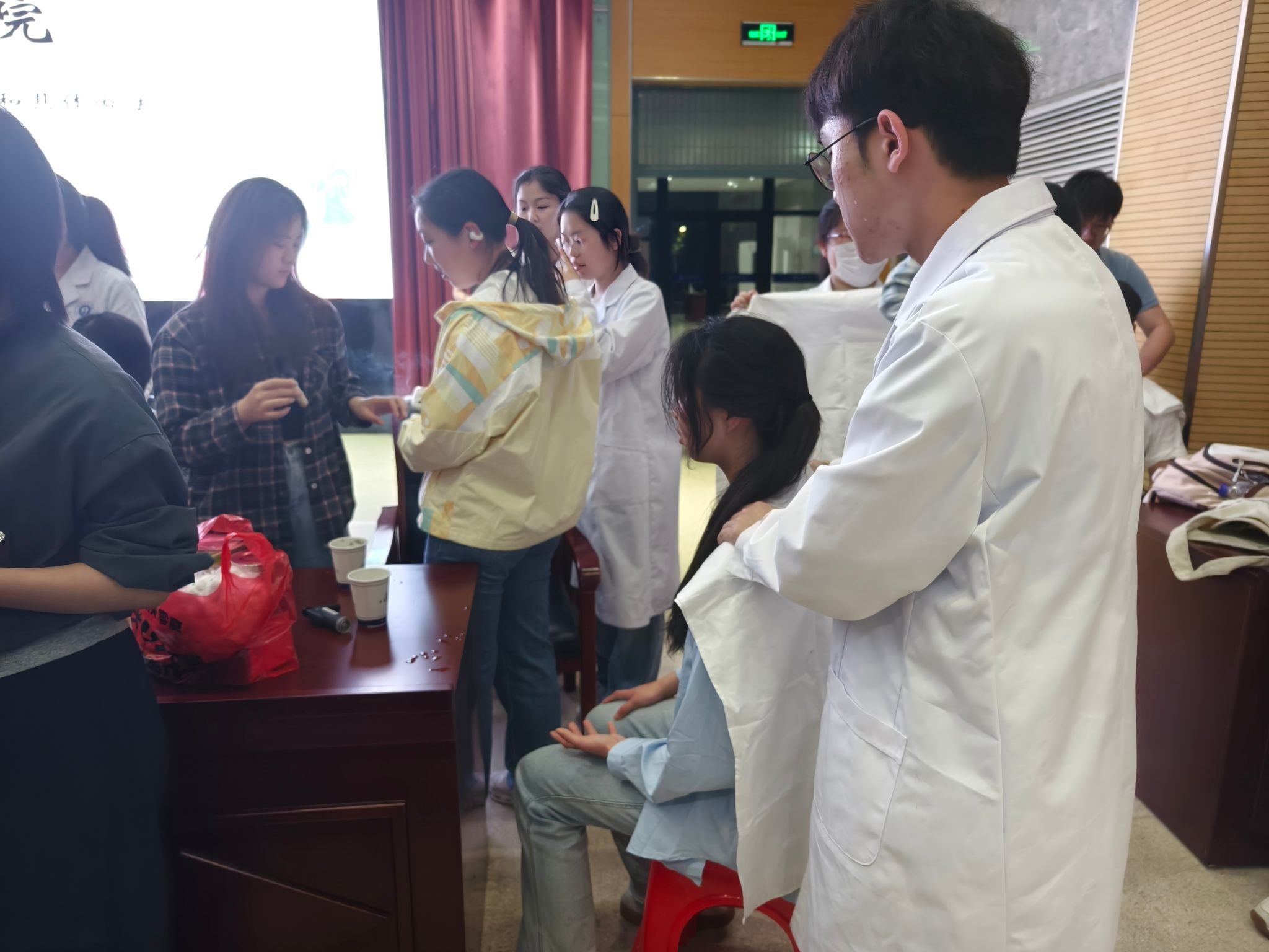 第一临床公司的同学开展了艾灸灸法与推拿按摩手法的宣讲,详细介绍艾灸历史、原理、适用人群和常用灸法,还提供免费艾灸体验。同时,演示多种推拿基础手法,教学自我按摩技巧,并科普常用穴位定位与功效,让同学们对养生保健知识有了更深入的了解。