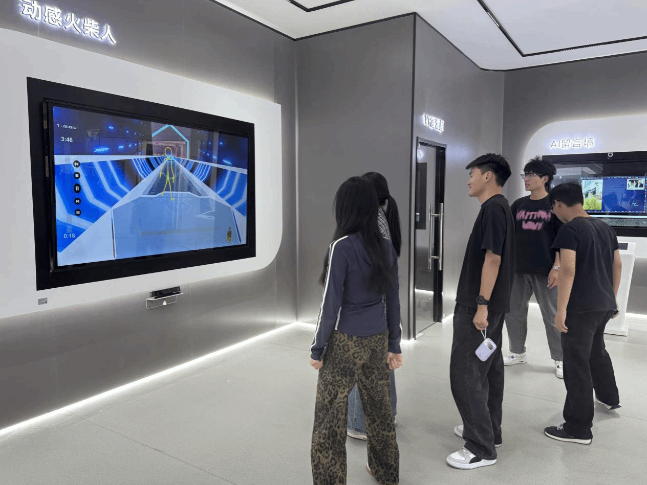 沙龙活动最后,同学们还参观了惟是楼一楼的人工智能科普体验中心,通过14组功能模块,借助声光电一体化的沉浸式设计,在现场沉浸式体验了AI同教育、医疗、城市管理等的高度融合,也让同学们深深地感受到了“AI+中医药”的独特魅力。