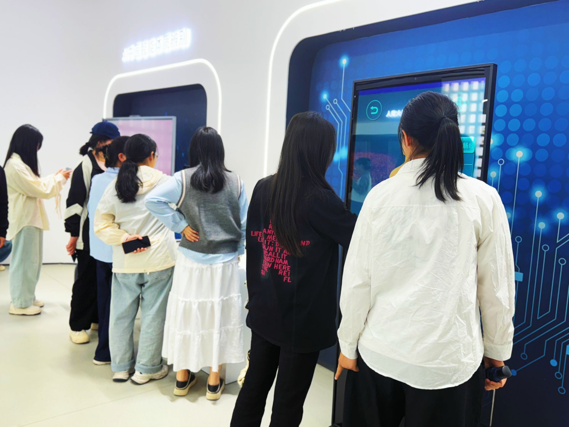 展厅还设计了沉浸式学习动线,同学们在不同功能区域实践任务后,即可获得专属印章。随着探索深入,大家逐渐理解 AI 如何辅助中医实现精准诊断与个性化治疗方案,在盖章打卡的过程中,不仅积累了知识,更惊叹于传统中医智慧与现代科技结合迸发出的创新活力。