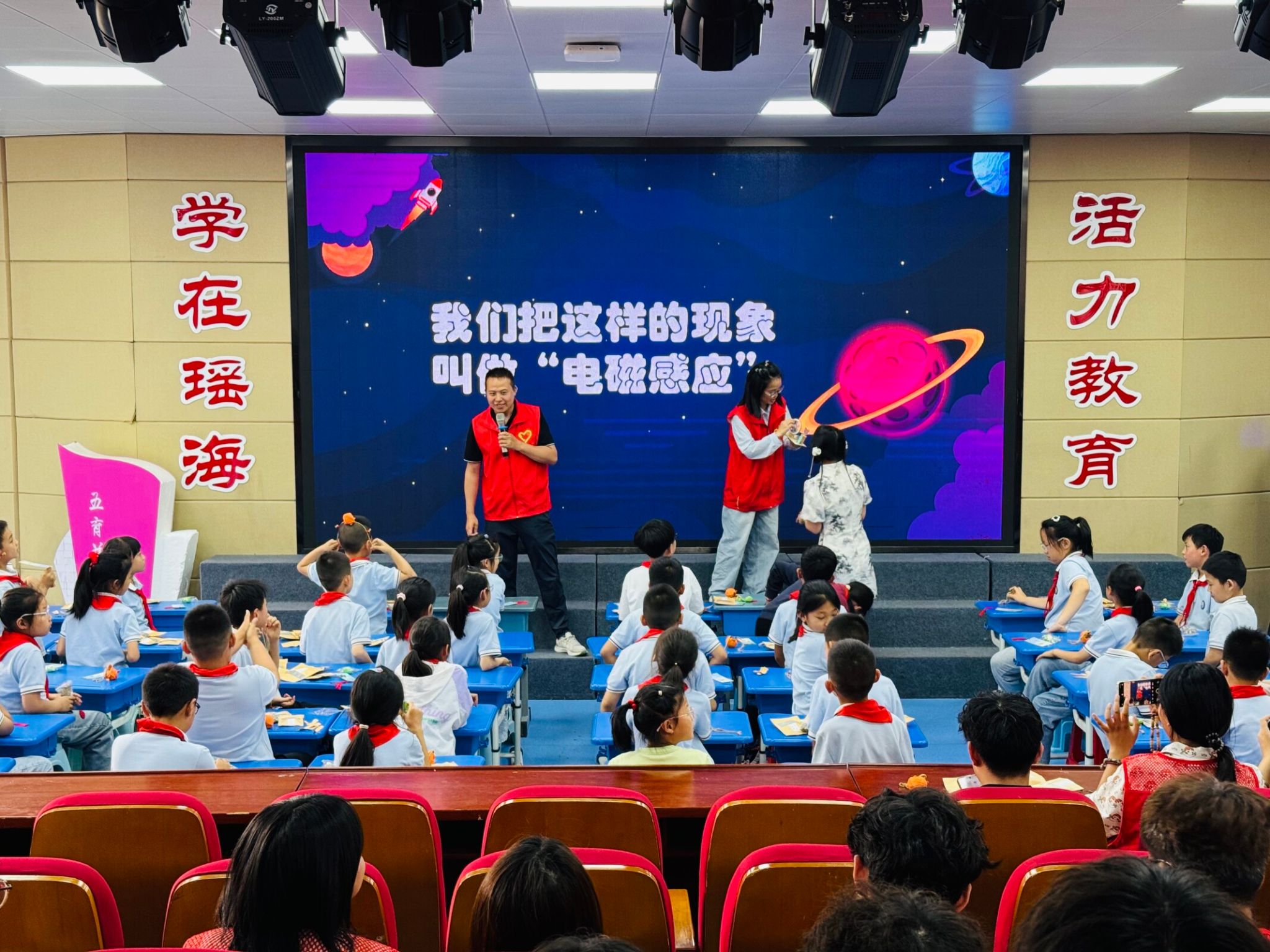 物理实验也成为本次活动的一大亮点。志愿者和老师们精心设计了趣味实验,深入浅出地讲解了实验的科学原理,同学们积极动手操作,在操作过程中,激发对科学的浓厚兴趣。