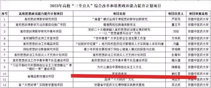 日前,安徽省委教育工委、安徽省教育厅公布了2023年高校“三全育人”综合改革和思想政治能力提升计划项目评审结果,公司1个项目获批立项为精品教材建设项目。