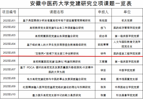近日,员工第一党支部书记徐伟主持申报的“互联网+”视域下党支部工作创新研究项目获得公司党建研究课题立项